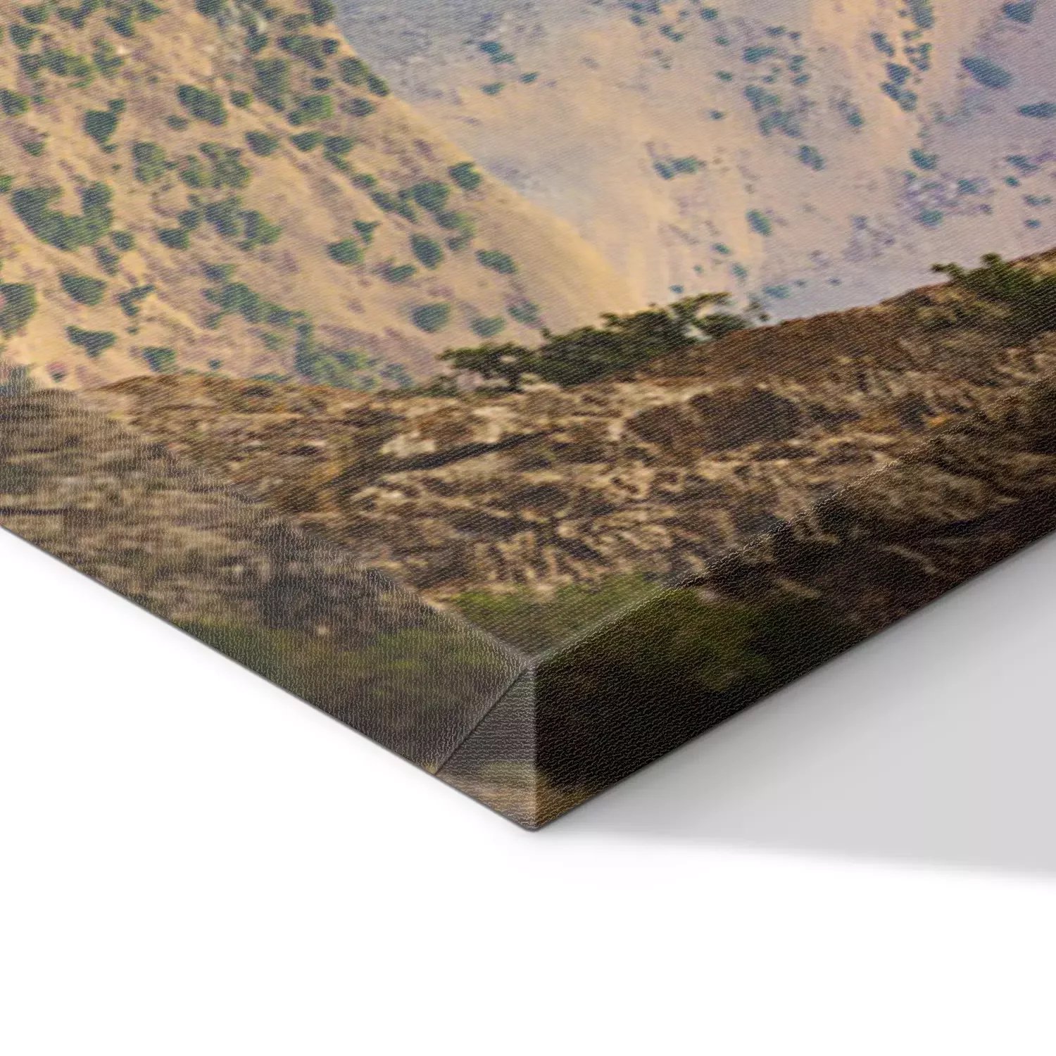 De print wordt aangebracht op hoogwaardig canvas dat op een schildersweefgetouw (spieraam) wordt gespannen. Omdat de print de zijranden bedekt, hoeft het ontwerp niet met een extra kader te worden omlijst. Wij raden ook composities aan die uit meerdere foto's bestaan en zo een coherente compositie vormen.
