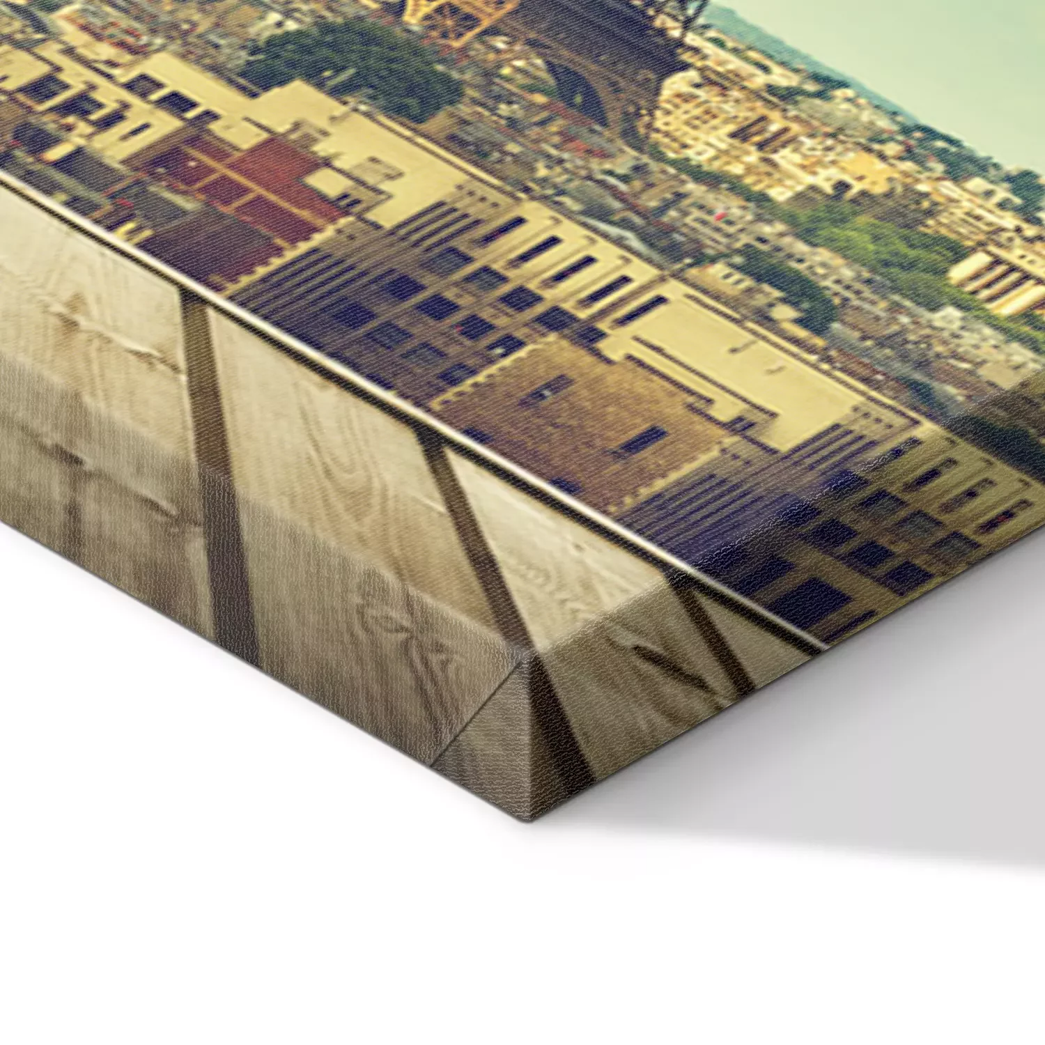 De print wordt aangebracht op hoogwaardig canvas dat op een schildersweefgetouw (spieraam) wordt gespannen. Omdat de print de zijranden bedekt, hoeft het ontwerp niet met een extra kader te worden omlijst. Wij raden ook composities aan die uit meerdere foto's bestaan en zo een coherente compositie vormen.