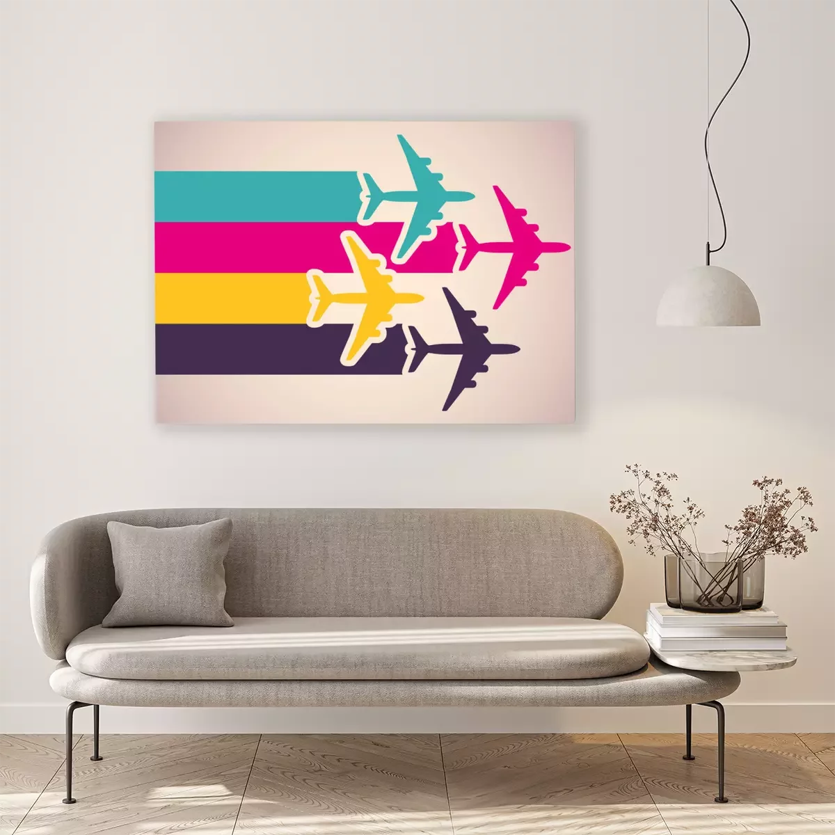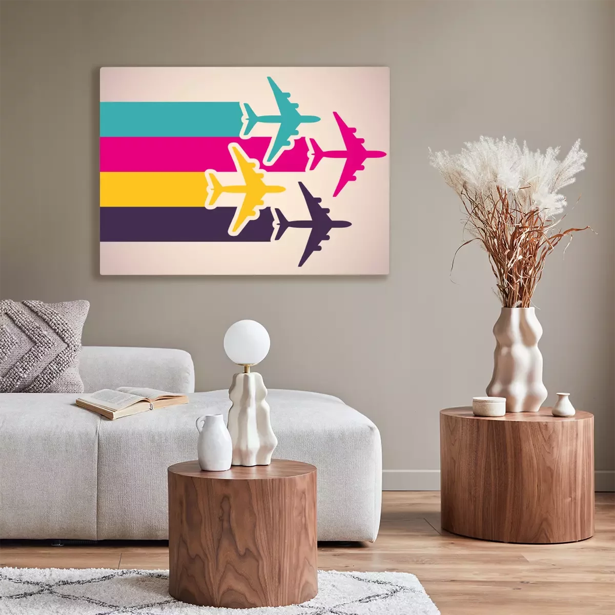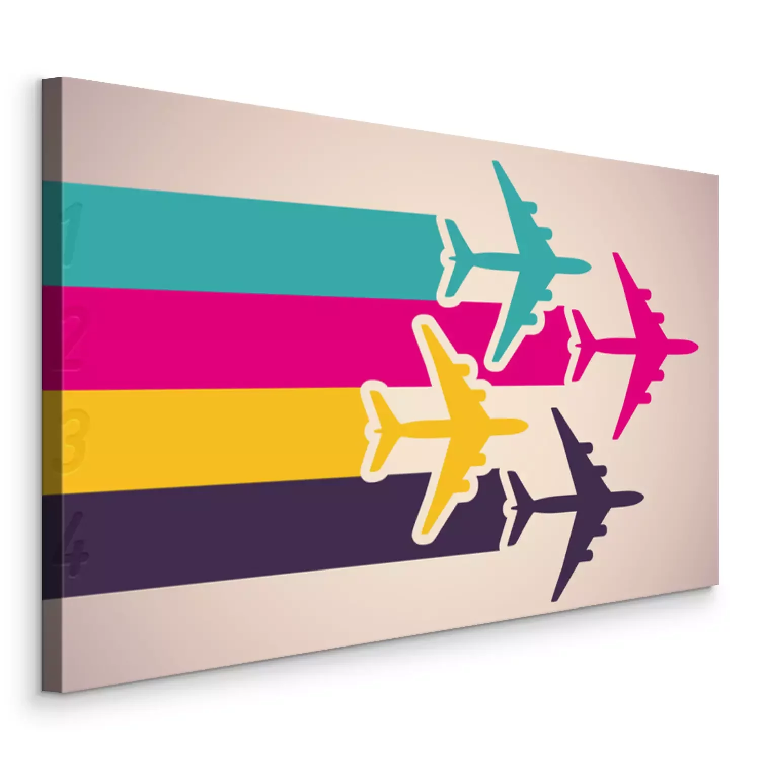 Canvas: Achtergrond met kleurrijke vliegtuigen. Vector illustratie.