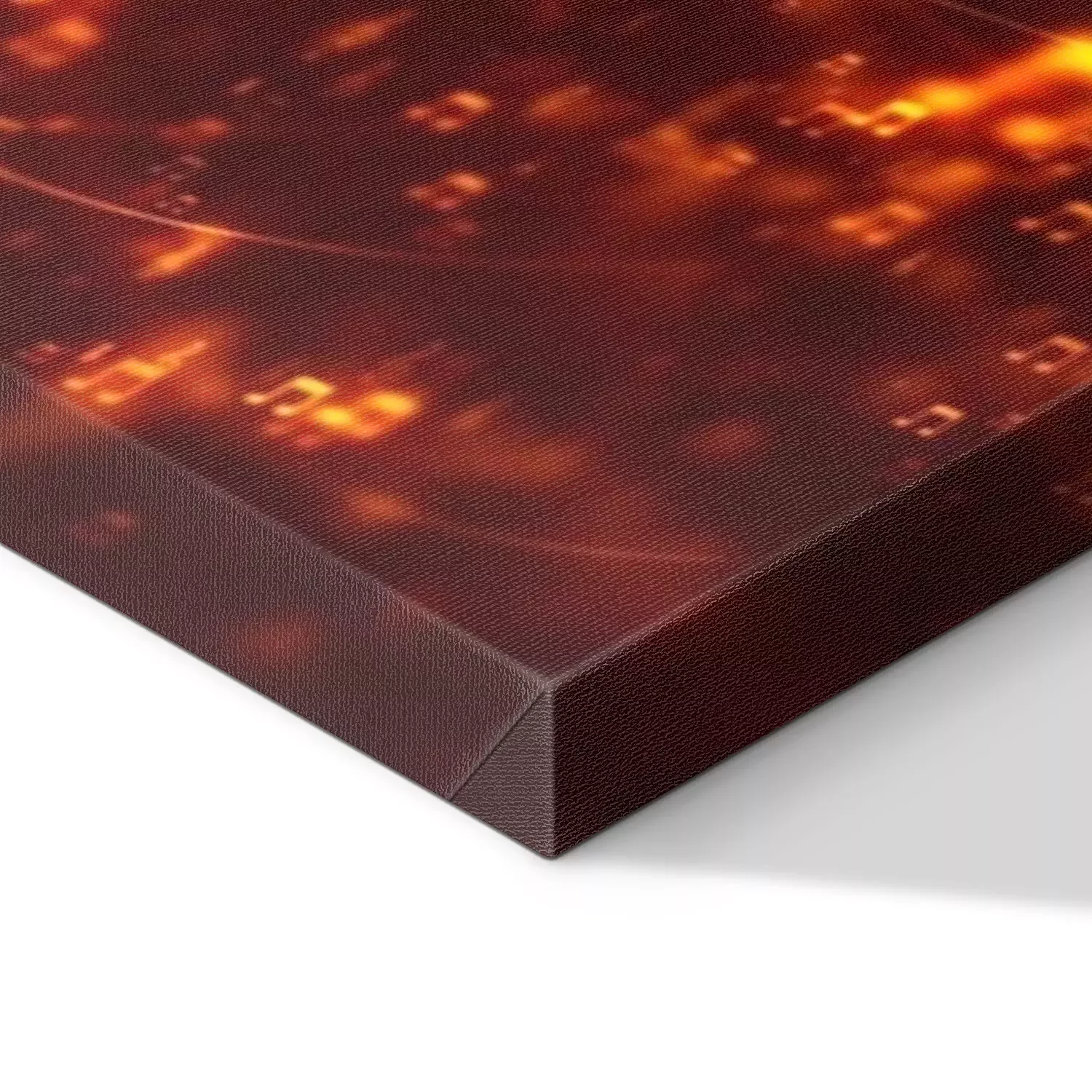 De print wordt aangebracht op hoogwaardig canvas dat op een schildersweefgetouw (spieraam) wordt gespannen. Omdat de print de zijranden bedekt, hoeft het ontwerp niet met een extra kader te worden omlijst. Wij raden ook composities aan die uit meerdere foto's bestaan en zo een coherente compositie vormen.
