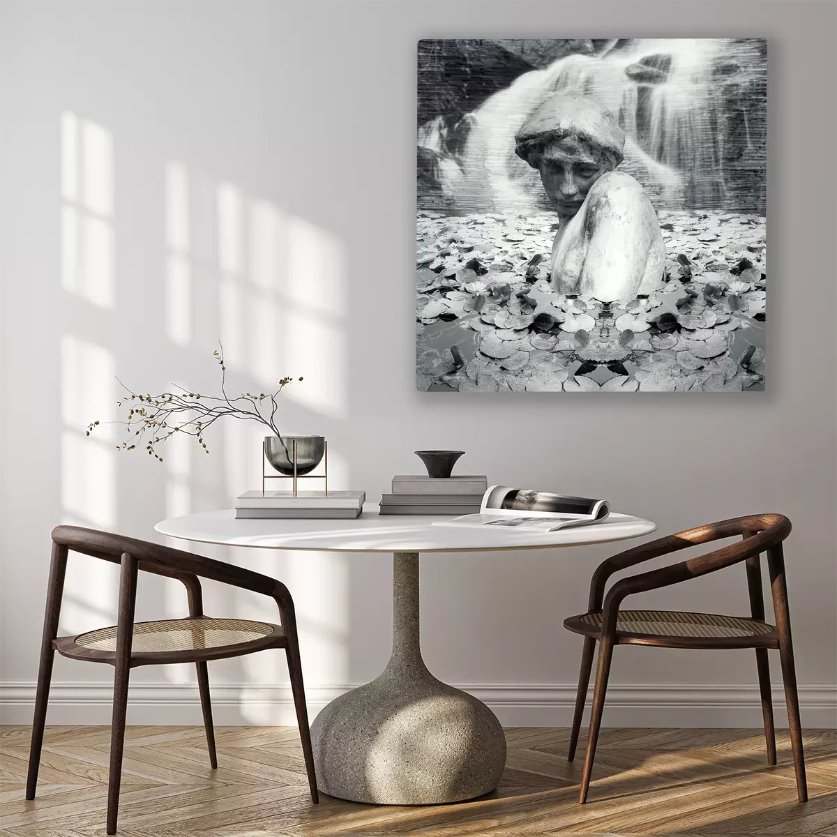 De print wordt aangebracht op hoogwaardig canvas dat op een schildersweefgetouw (spieraam) wordt gespannen. Omdat de print de zijranden bedekt, hoeft het ontwerp niet met een extra kader te worden omlijst. Wij raden ook composities aan die uit meerdere foto's bestaan en zo een coherente compositie vormen.