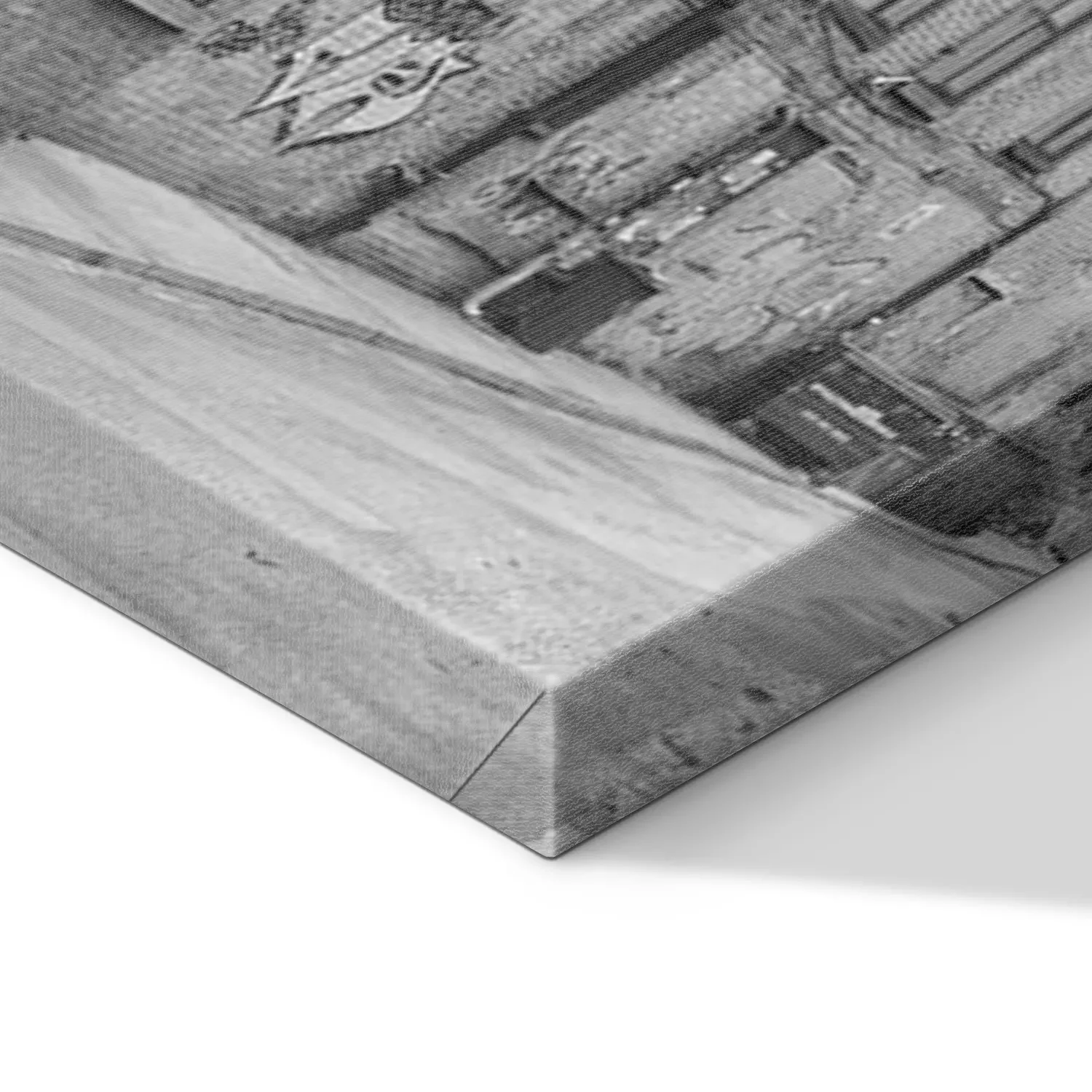 De print wordt aangebracht op hoogwaardig canvas dat op een schildersweefgetouw (spieraam) wordt gespannen. Omdat de print de zijranden bedekt, hoeft het ontwerp niet met een extra kader te worden omlijst. Wij raden ook composities aan die uit meerdere foto's bestaan en zo een coherente compositie vormen.