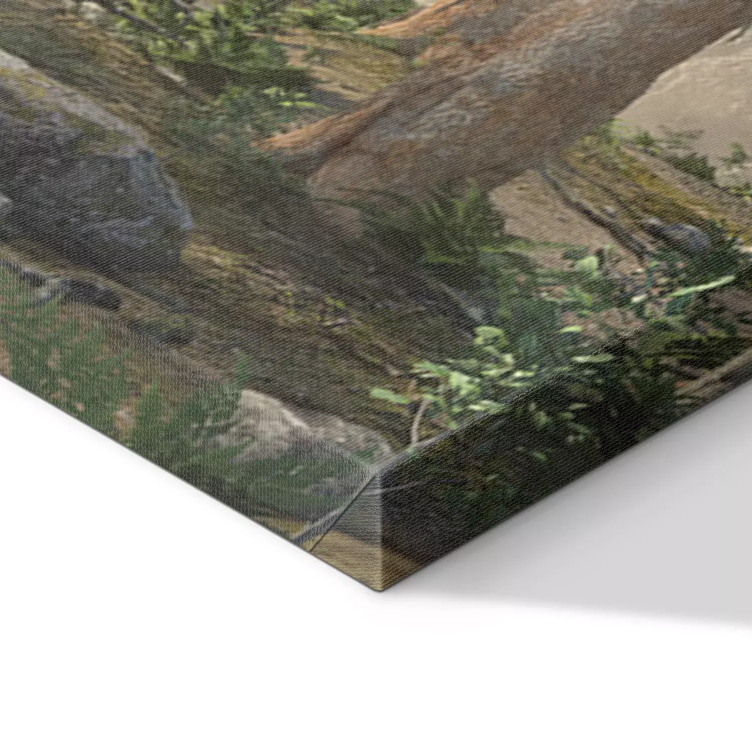 De print wordt aangebracht op hoogwaardig canvas dat op een schildersweefgetouw (spieraam) wordt gespannen. Omdat de print de zijranden bedekt, hoeft het ontwerp niet met een extra kader te worden omlijst. Wij raden ook composities aan die uit meerdere foto's bestaan en zo een coherente compositie vormen.