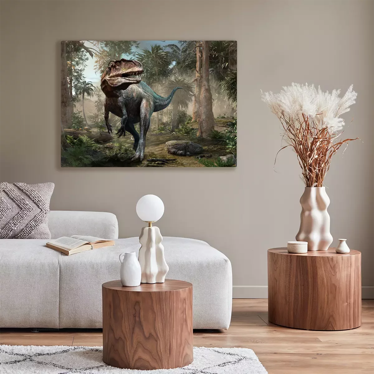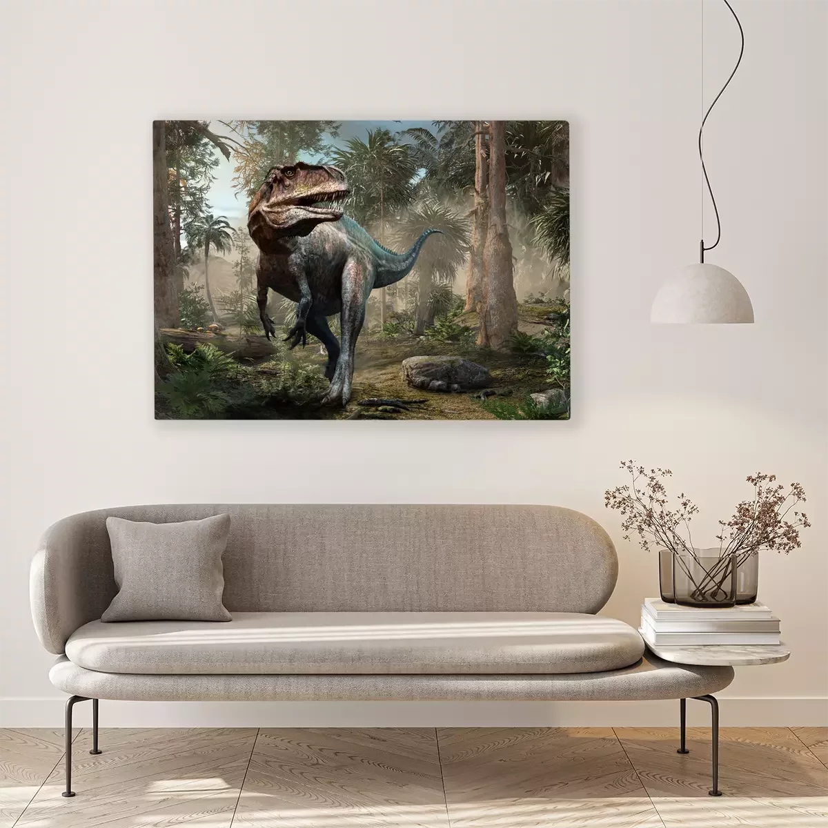 Tyrannosaurus Rex op een achtergrond met tropische vegetatie