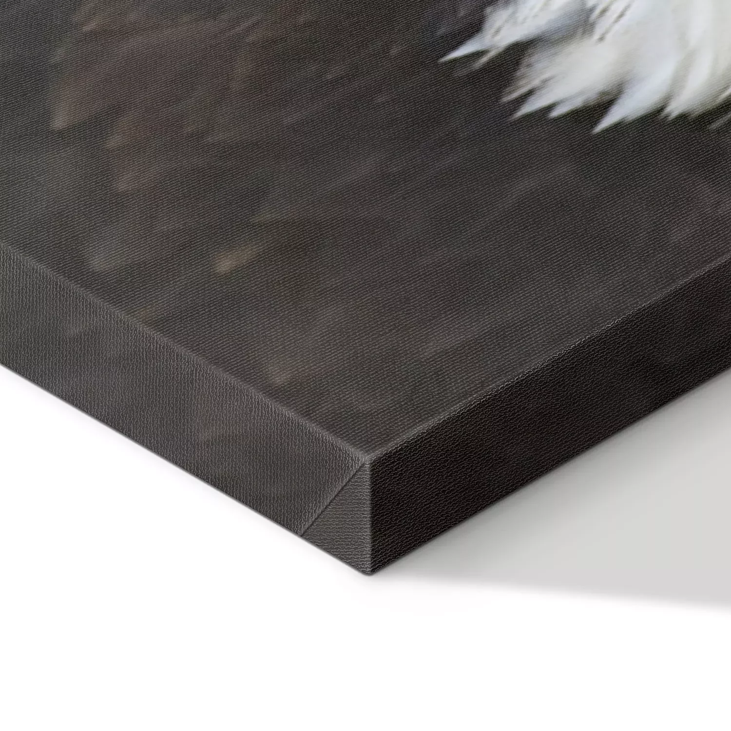 De print wordt aangebracht op hoogwaardig canvas dat op een schildersweefgetouw (spieraam) wordt gespannen. Omdat de print de zijranden bedekt, hoeft het ontwerp niet met een extra kader te worden omlijst. Wij raden ook composities aan die uit meerdere foto's bestaan en zo een coherente compositie vormen.