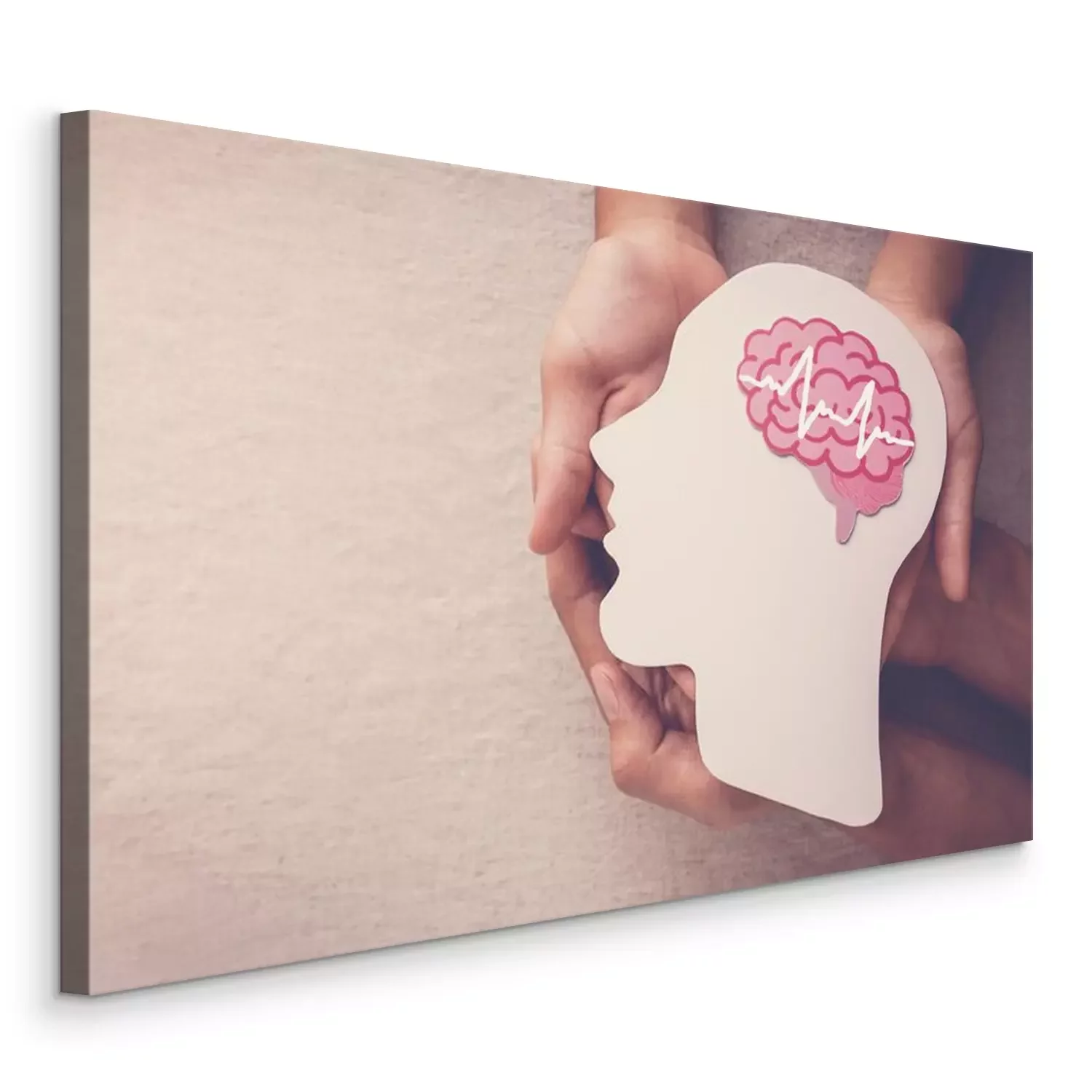 Canvas Adult and child hands holding encephalography brain paper cutout, Epilepsy and alzheimer awareness, seizure disorder, mental health concept
