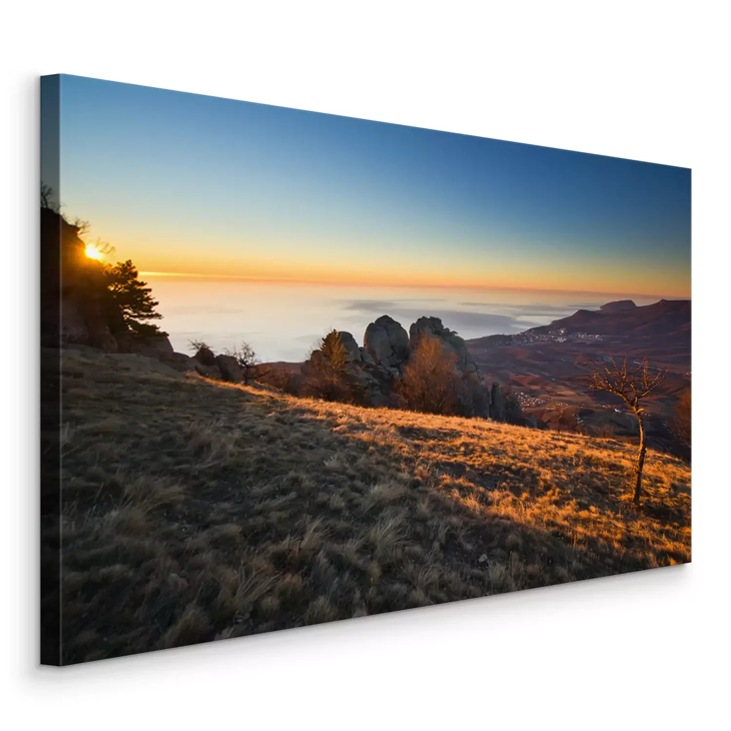 Canvas aerial view from mountains of magnificent sunrise above the sea