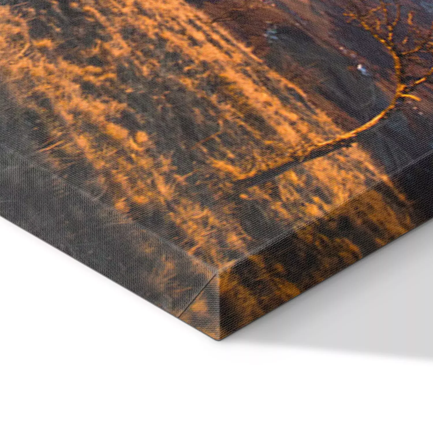 De print wordt aangebracht op hoogwaardig canvas dat op een schildersweefgetouw (spieraam) wordt gespannen. Omdat de print de zijranden bedekt, hoeft het ontwerp niet met een extra kader te worden omlijst. Wij raden ook composities aan die uit meerdere foto's bestaan en zo een coherente compositie vormen.
