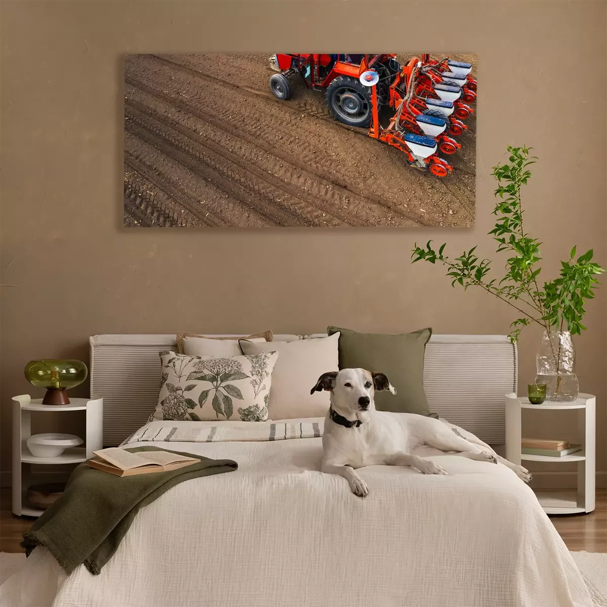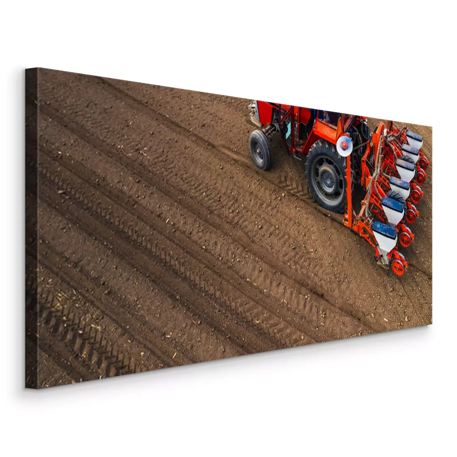 Canvas Aerial view of tractor with mounted seeder performing direct seeding