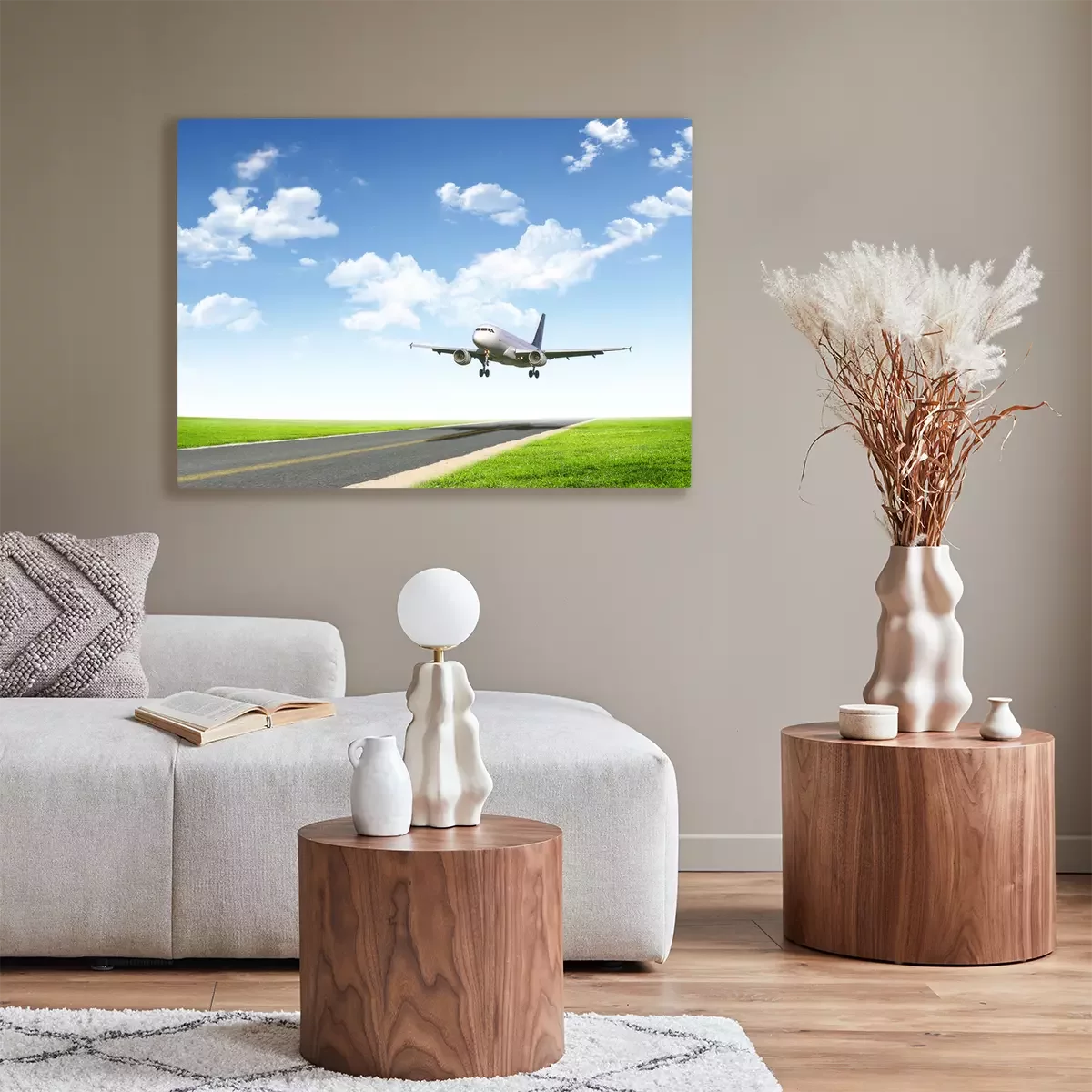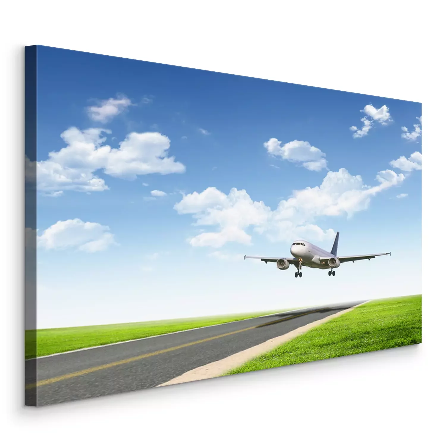 Canvas: Afbeelding van een witte passagiersvliegtuig