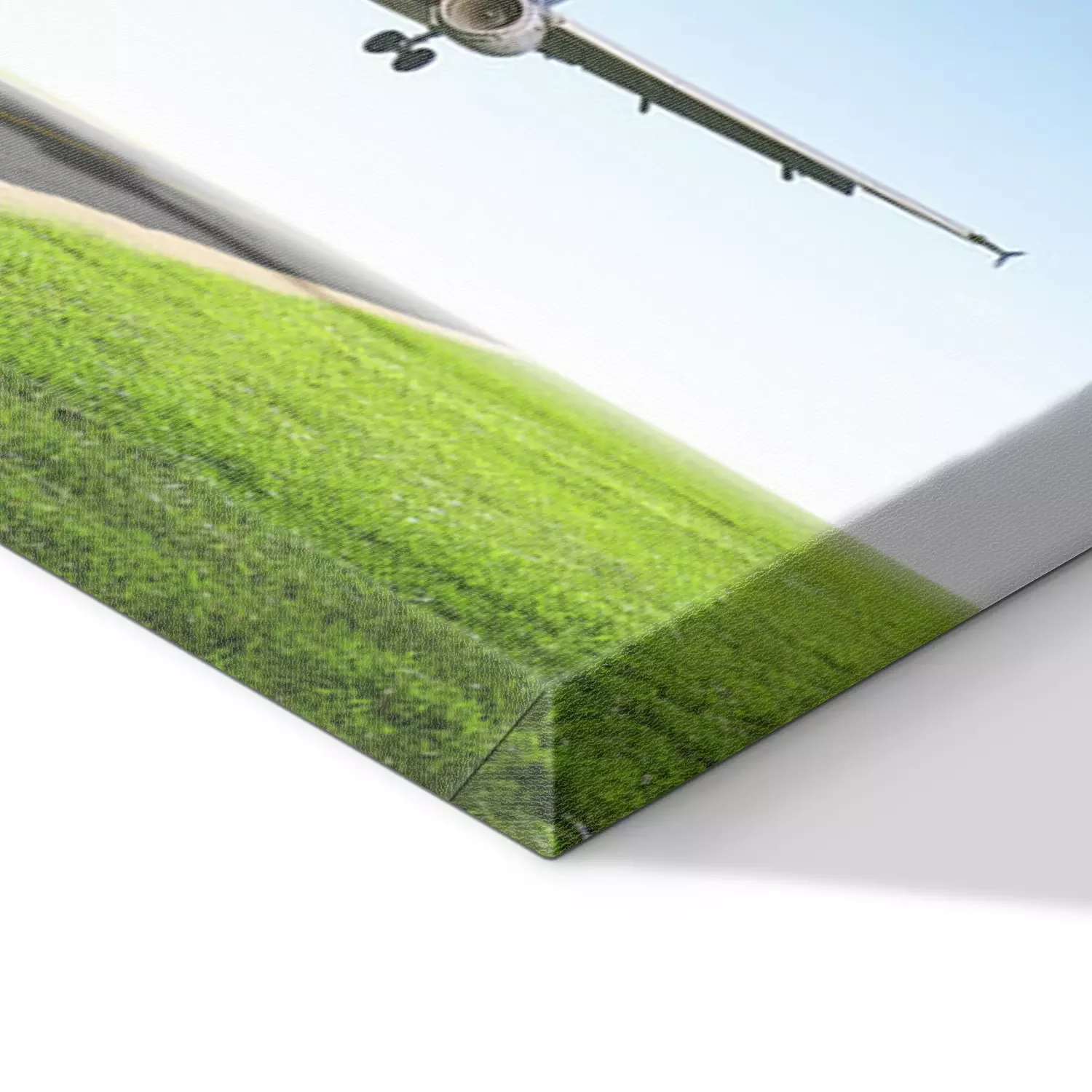 De print wordt aangebracht op hoogwaardig canvas dat op een schildersweefgetouw (spieraam) wordt gespannen. Omdat de print de zijranden bedekt, hoeft het ontwerp niet met een extra kader te worden omlijst. Wij raden ook composities aan die uit meerdere foto's bestaan en zo een coherente compositie vormen.