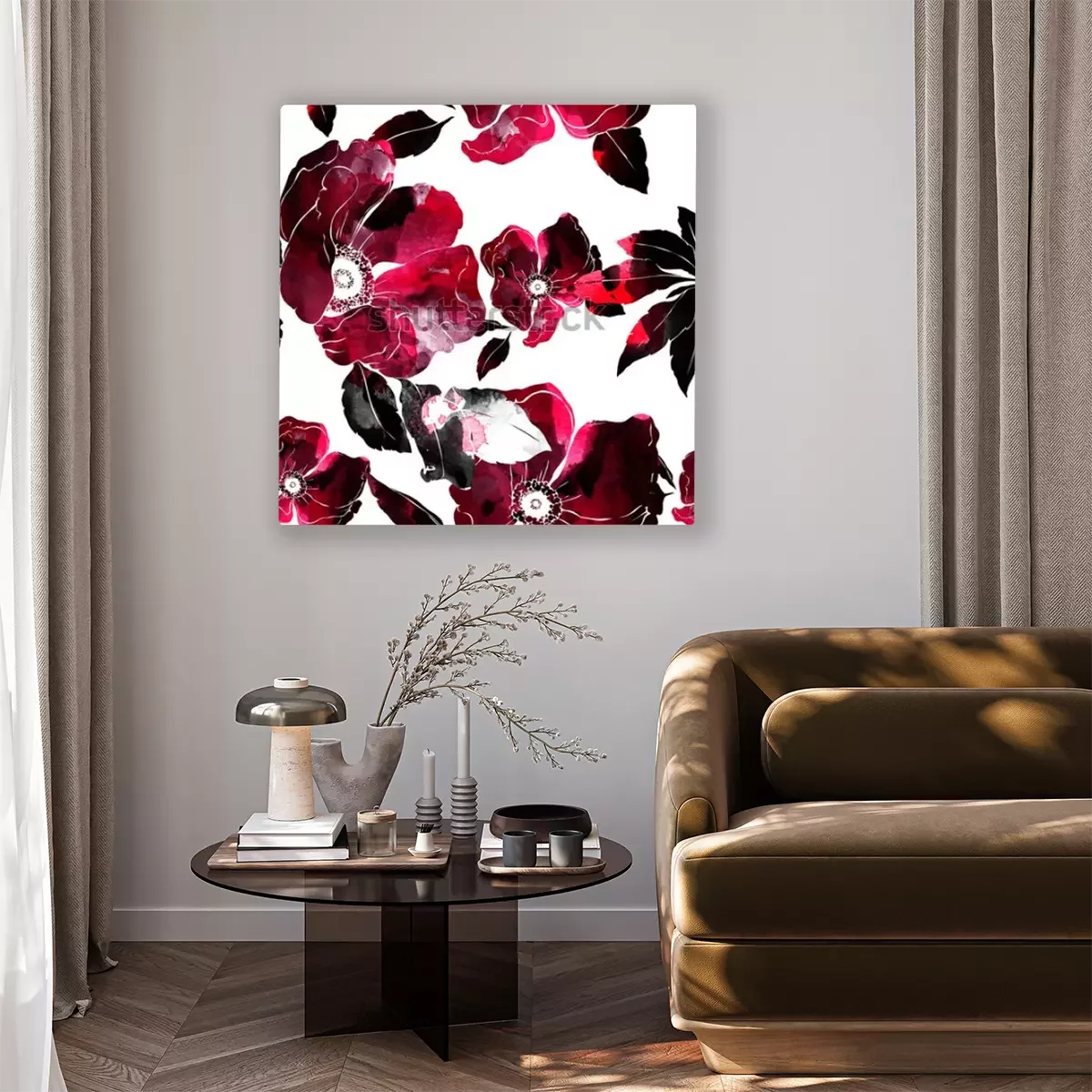 Canvas: Afdrukken bloeiende wild roos naadloze patroon. abstracte aquarel in digitale hand knikkende afbeelding. mixed media-artwork voor textiel, stoffen, souvenirs, verpakkingen in wenskaarten.