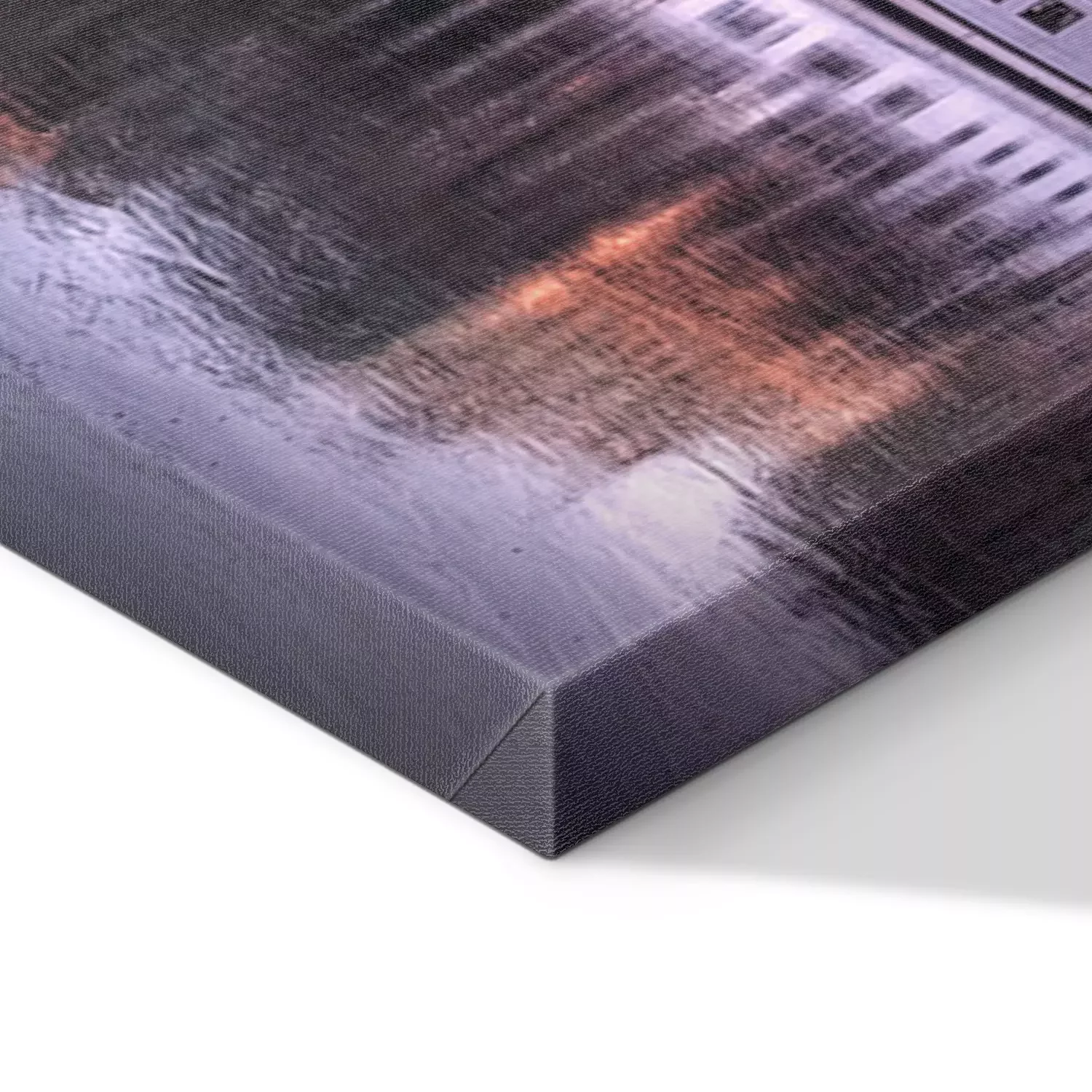 De print wordt aangebracht op hoogwaardig canvas dat op een schildersweefgetouw (spieraam) wordt gespannen. Omdat de print de zijranden bedekt, hoeft het ontwerp niet met een extra kader te worden omlijst. Wij raden ook composities aan die uit meerdere foto's bestaan en zo een coherente compositie vormen.
