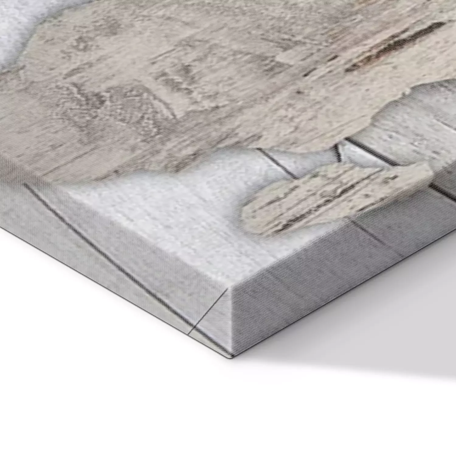 De print wordt aangebracht op hoogwaardig canvas dat op een schildersweefgetouw (spieraam) wordt gespannen. Omdat de print de zijranden bedekt, hoeft het ontwerp niet met een extra kader te worden omlijst. Wij raden ook composities aan die uit meerdere foto's bestaan en zo een coherente compositie vormen.