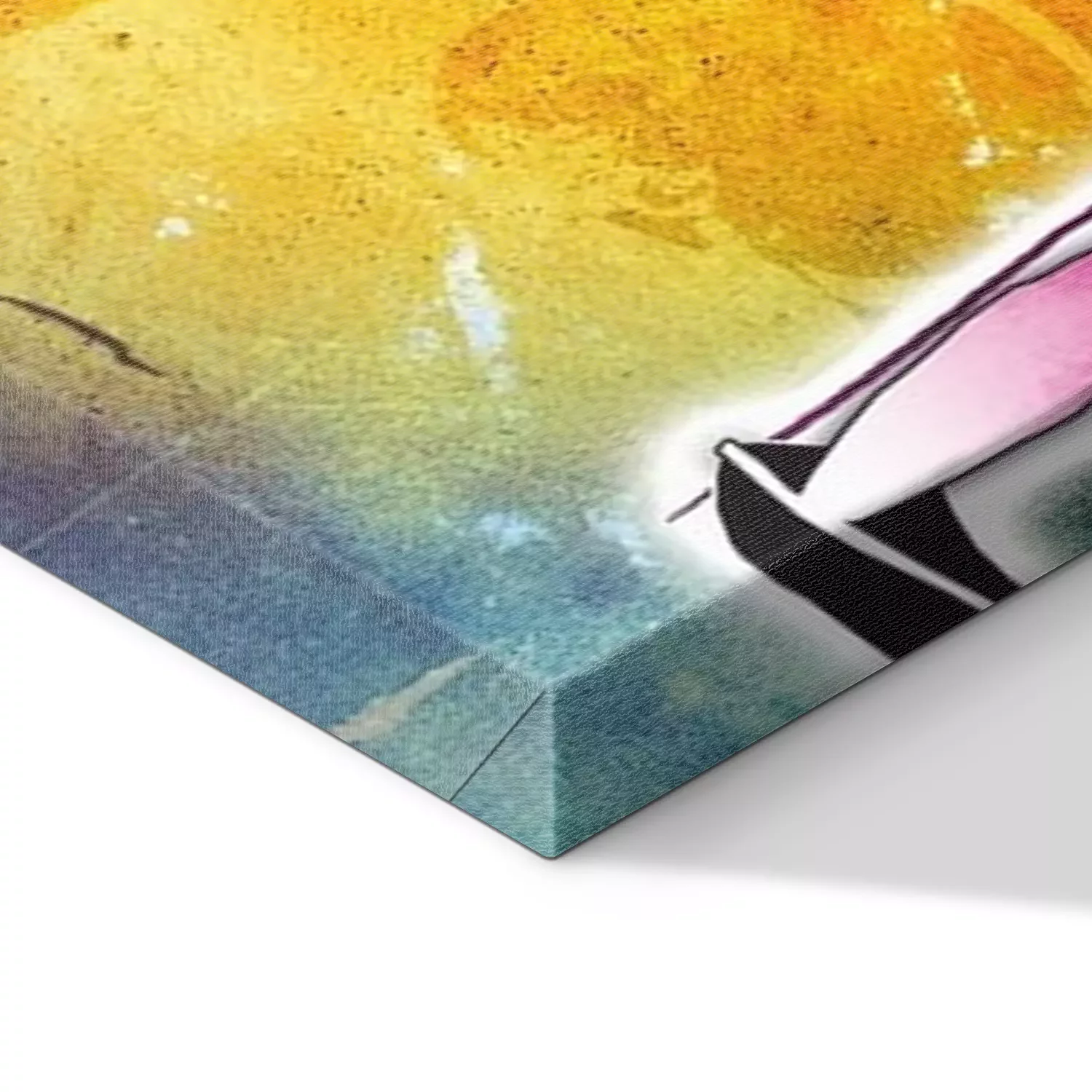 De print wordt aangebracht op hoogwaardig canvas dat op een schildersweefgetouw (spieraam) wordt gespannen. Omdat de print de zijranden bedekt, hoeft het ontwerp niet met een extra kader te worden omlijst. Wij raden ook composities aan die uit meerdere foto's bestaan en zo een coherente compositie vormen.