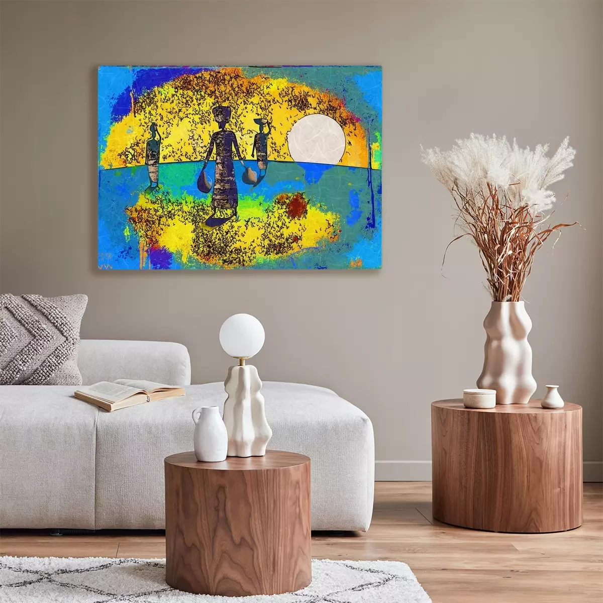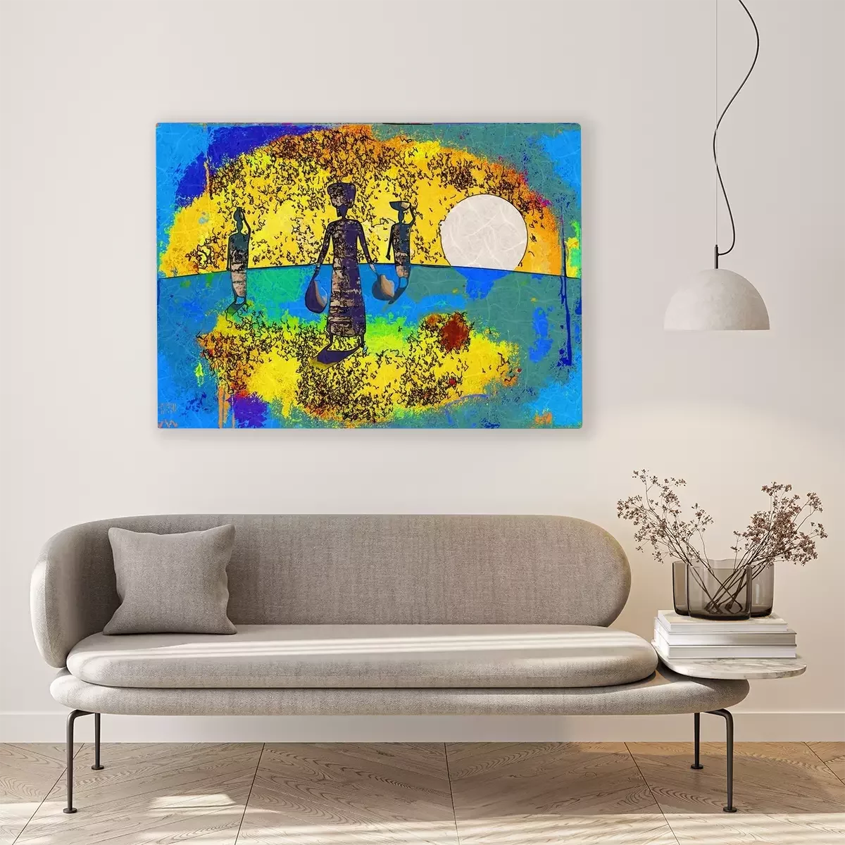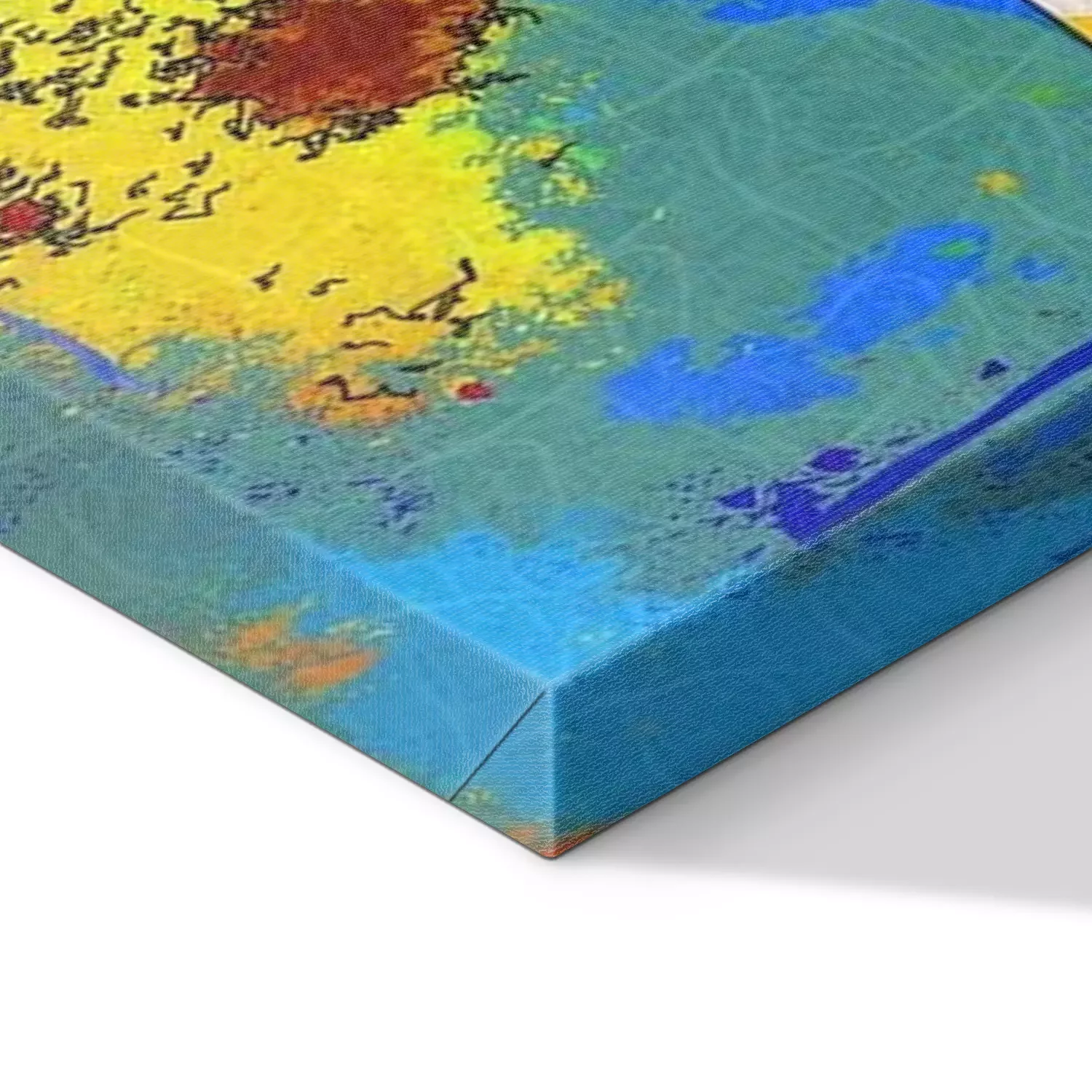 De print wordt aangebracht op hoogwaardig canvas dat op een schildersweefgetouw (spieraam) wordt gespannen. Omdat de print de zijranden bedekt, hoeft het ontwerp niet met een extra kader te worden omlijst. Wij raden ook composities aan die uit meerdere foto's bestaan en zo een coherente compositie vormen.