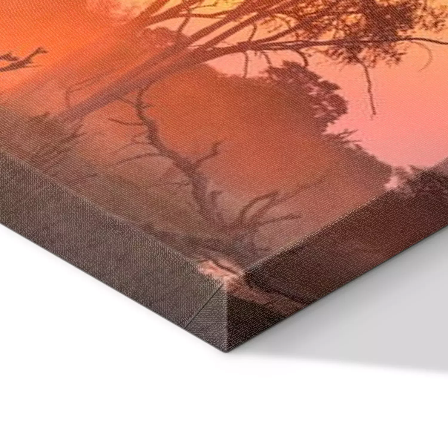 De print wordt aangebracht op hoogwaardig canvas dat op een schildersweefgetouw (spieraam) wordt gespannen. Omdat de print de zijranden bedekt, hoeft het ontwerp niet met een extra kader te worden omlijst. Wij raden ook composities aan die uit meerdere foto's bestaan en zo een coherente compositie vormen.