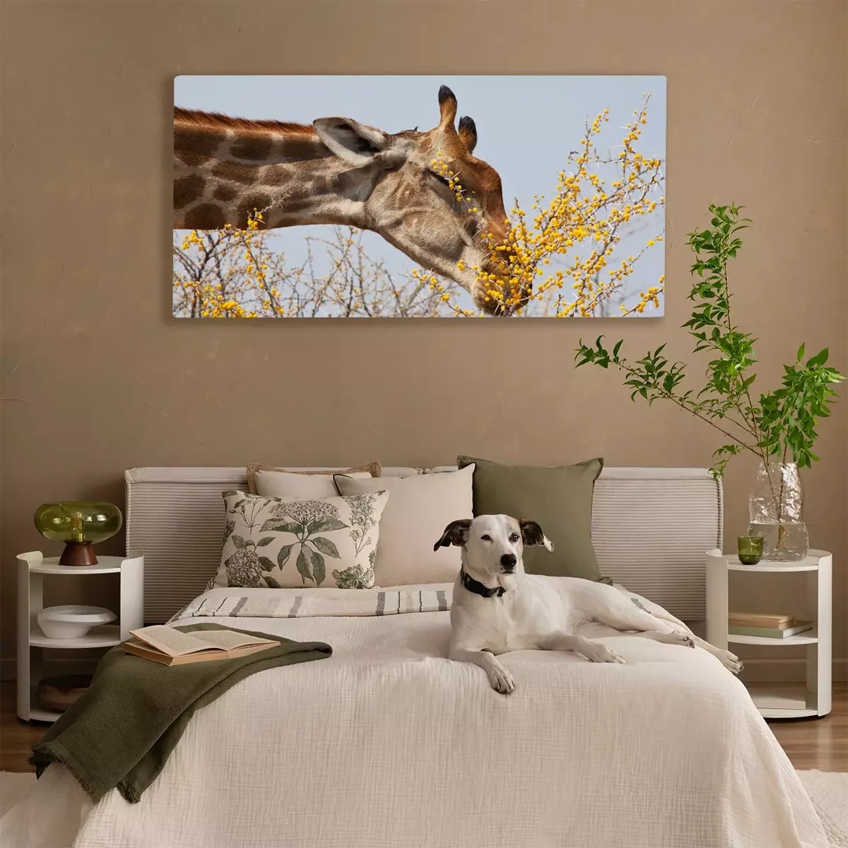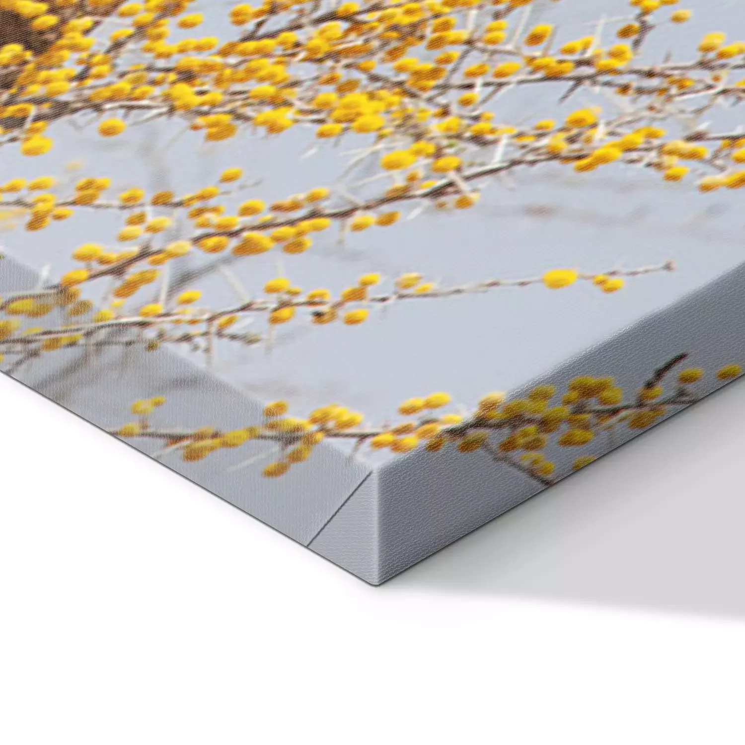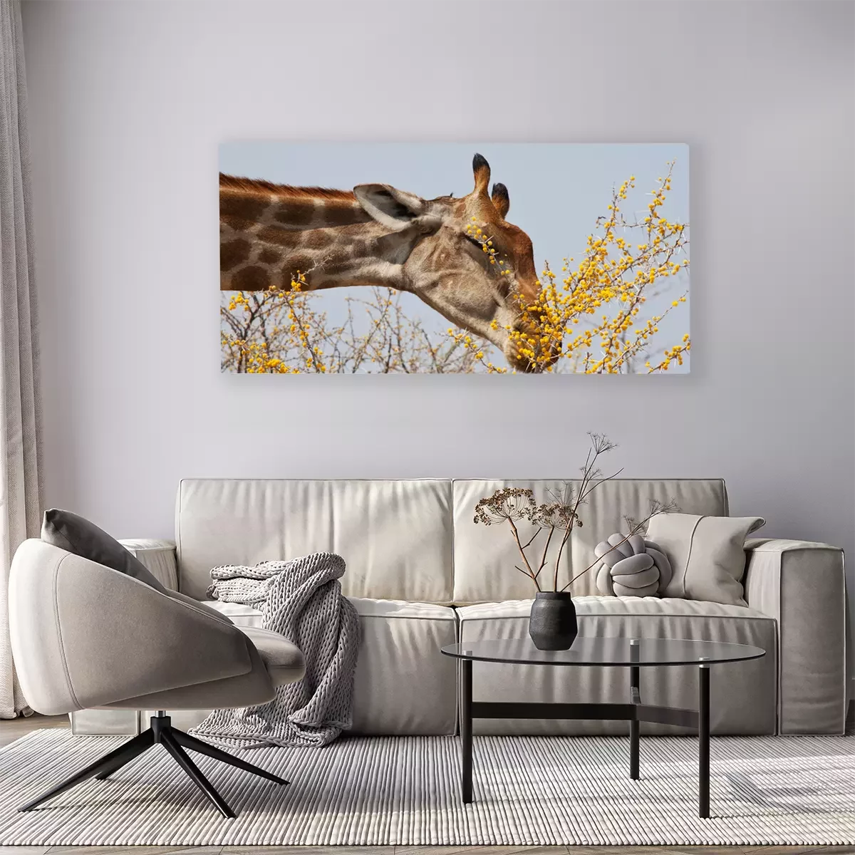 De print wordt aangebracht op hoogwaardig canvas dat op een schildersweefgetouw (spieraam) wordt gespannen. Omdat de print de zijranden bedekt, hoeft het ontwerp niet met een extra kader te worden omlijst. Wij raden ook composities aan die uit meerdere foto's bestaan en zo een coherente compositie vormen.