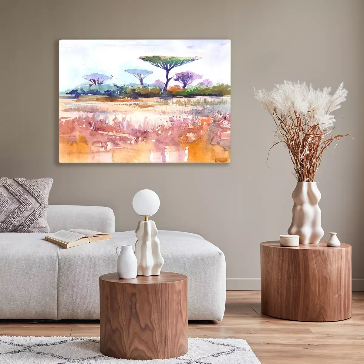 Canvas: Afrikaans landschap. Savana. Aquarel illustratie