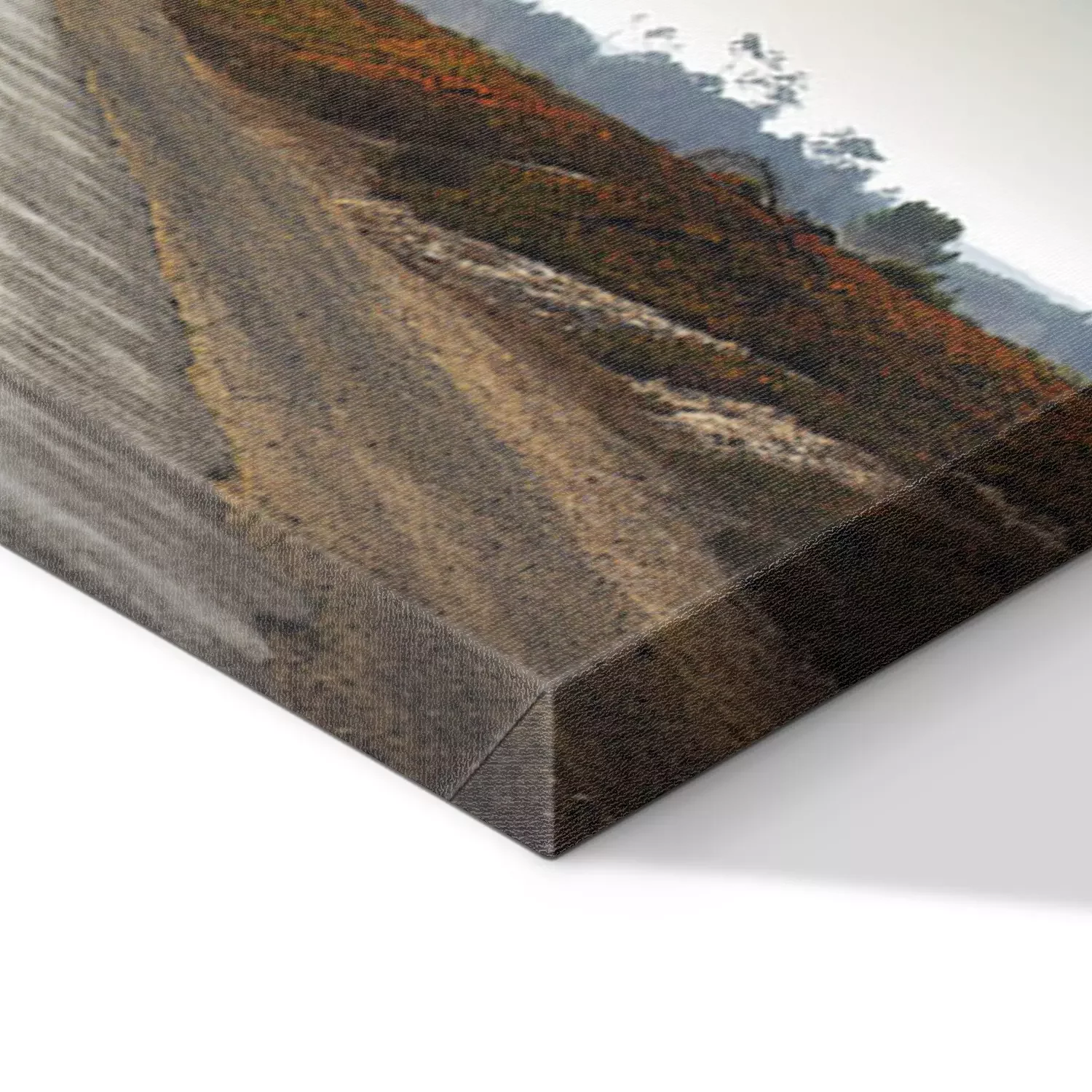 De print wordt aangebracht op hoogwaardig canvas dat op een schildersweefgetouw (spieraam) wordt gespannen. Omdat de print de zijranden bedekt, hoeft het ontwerp niet met een extra kader te worden omlijst. Wij raden ook composities aan die uit meerdere foto's bestaan en zo een coherente compositie vormen.