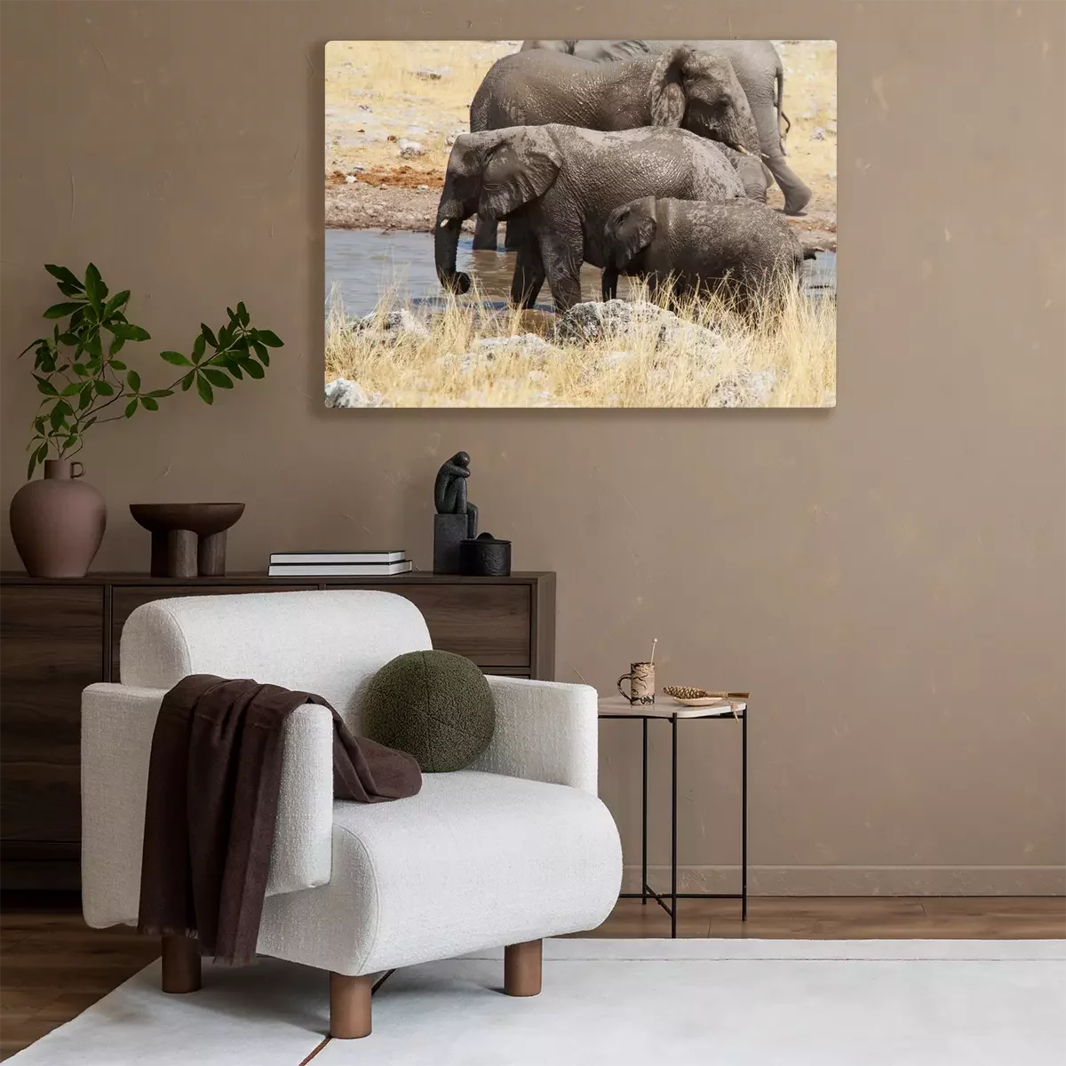 De print wordt aangebracht op hoogwaardig canvas dat op een schildersweefgetouw (spieraam) wordt gespannen. Omdat de print de zijranden bedekt, hoeft het ontwerp niet met een extra kader te worden omlijst. Wij raden ook composities aan die uit meerdere foto's bestaan en zo een coherente compositie vormen.