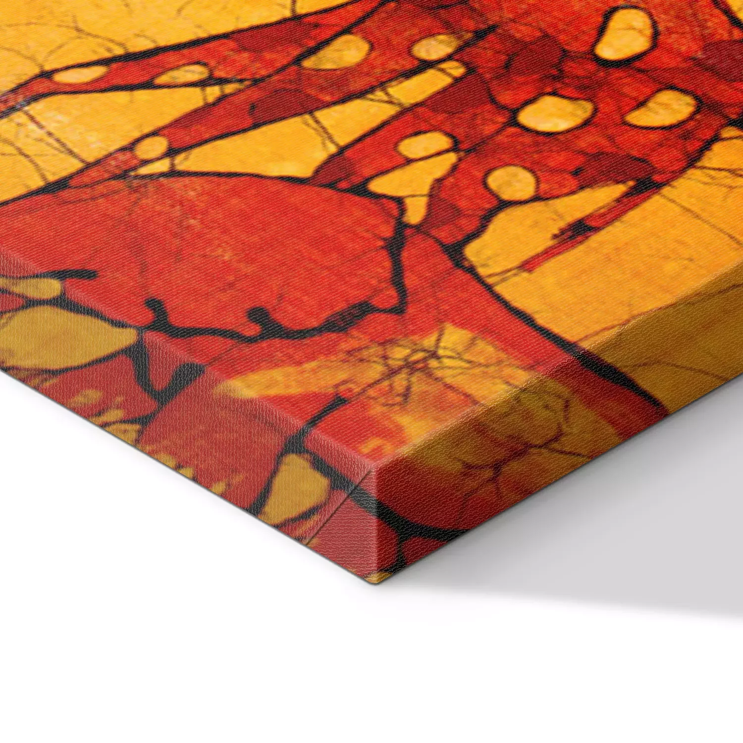 De print wordt aangebracht op hoogwaardig canvas dat op een schildersweefgetouw (spieraam) wordt gespannen. Omdat de print de zijranden bedekt, hoeft het ontwerp niet met een extra kader te worden omlijst. Wij raden ook composities aan die uit meerdere foto's bestaan en zo een coherente compositie vormen.