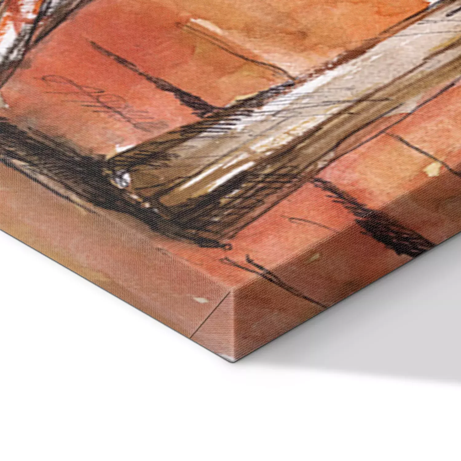 De print wordt aangebracht op hoogwaardig canvas dat op een schildersweefgetouw (spieraam) wordt gespannen. Omdat de print de zijranden bedekt, hoeft het ontwerp niet met een extra kader te worden omlijst. Wij raden ook composities aan die uit meerdere foto's bestaan en zo een coherente compositie vormen.