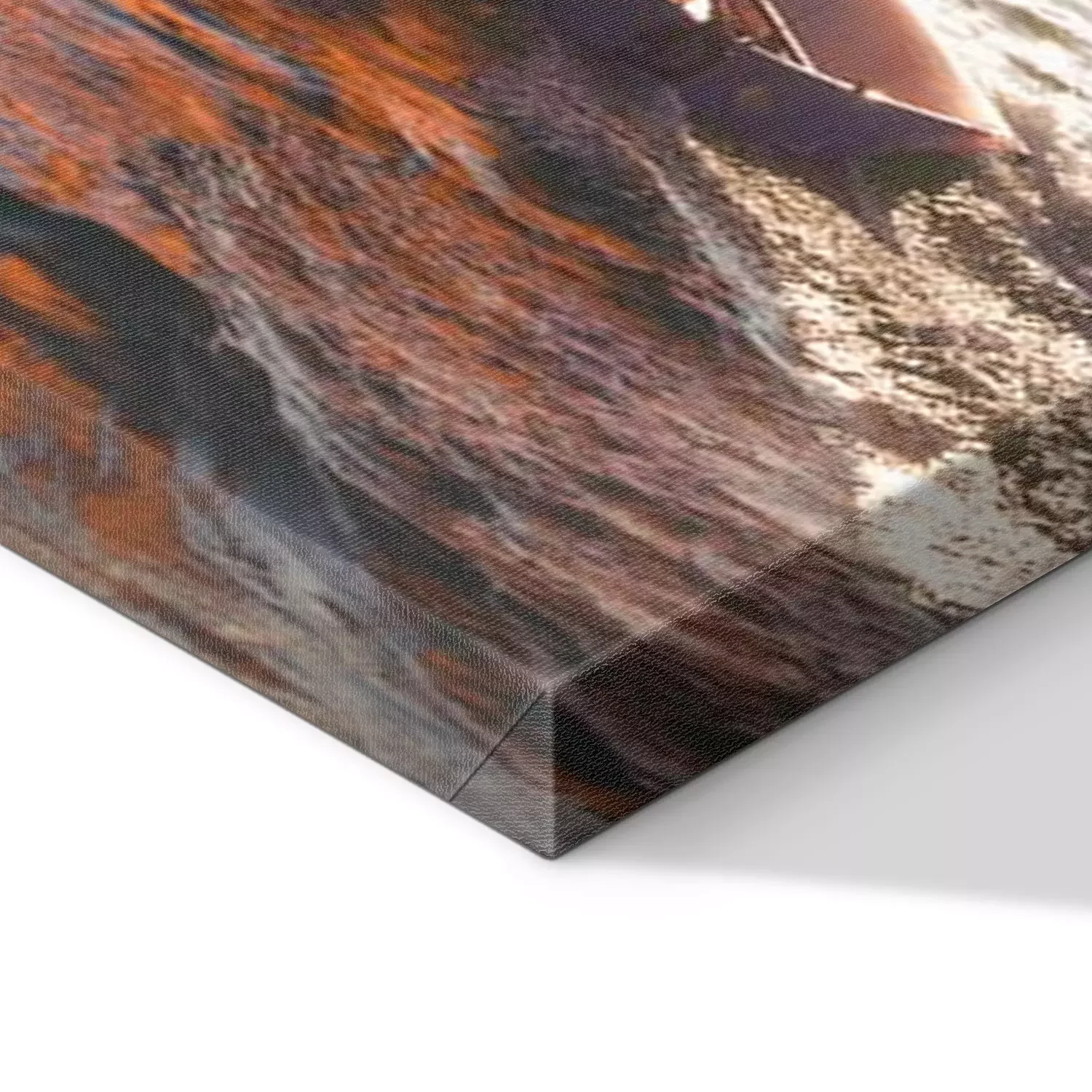 De print wordt aangebracht op hoogwaardig canvas dat op een schildersweefgetouw (spieraam) wordt gespannen. Omdat de print de zijranden bedekt, hoeft het ontwerp niet met een extra kader te worden omlijst. Wij raden ook composities aan die uit meerdere foto's bestaan en zo een coherente compositie vormen.