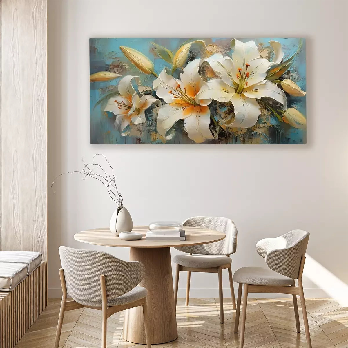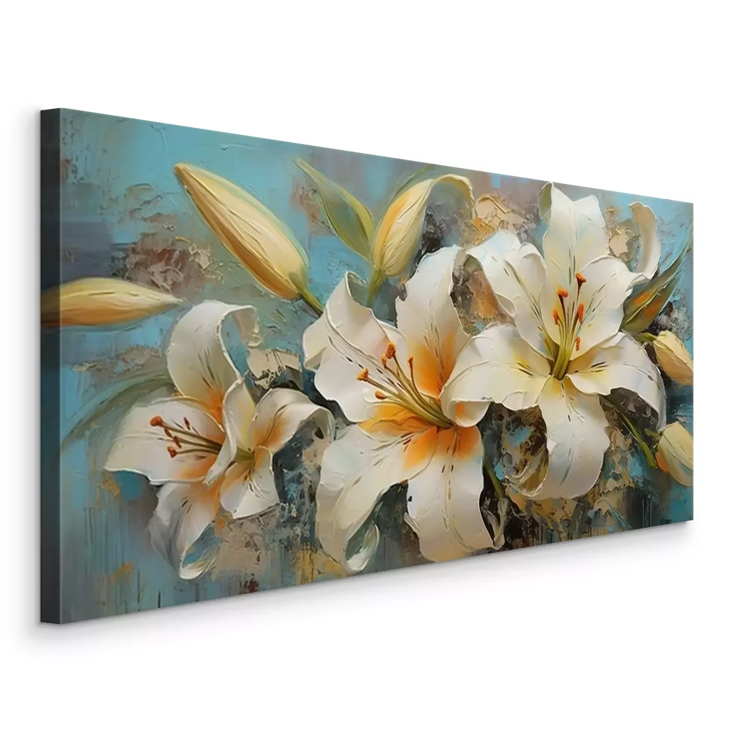 Canvas AI Generated. AI Generative. Beautiful botanic lily flower oil paint illustration. Aesthetics floral inspirational tenderness illustration. Graphic Art