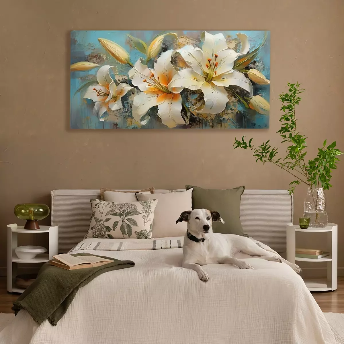 Canvas: AI Generated. AI Generative. Beautiful botanic lily flower oil paint illustration. Aesthetics floral inspirational tenderness illustration. Graphic Art