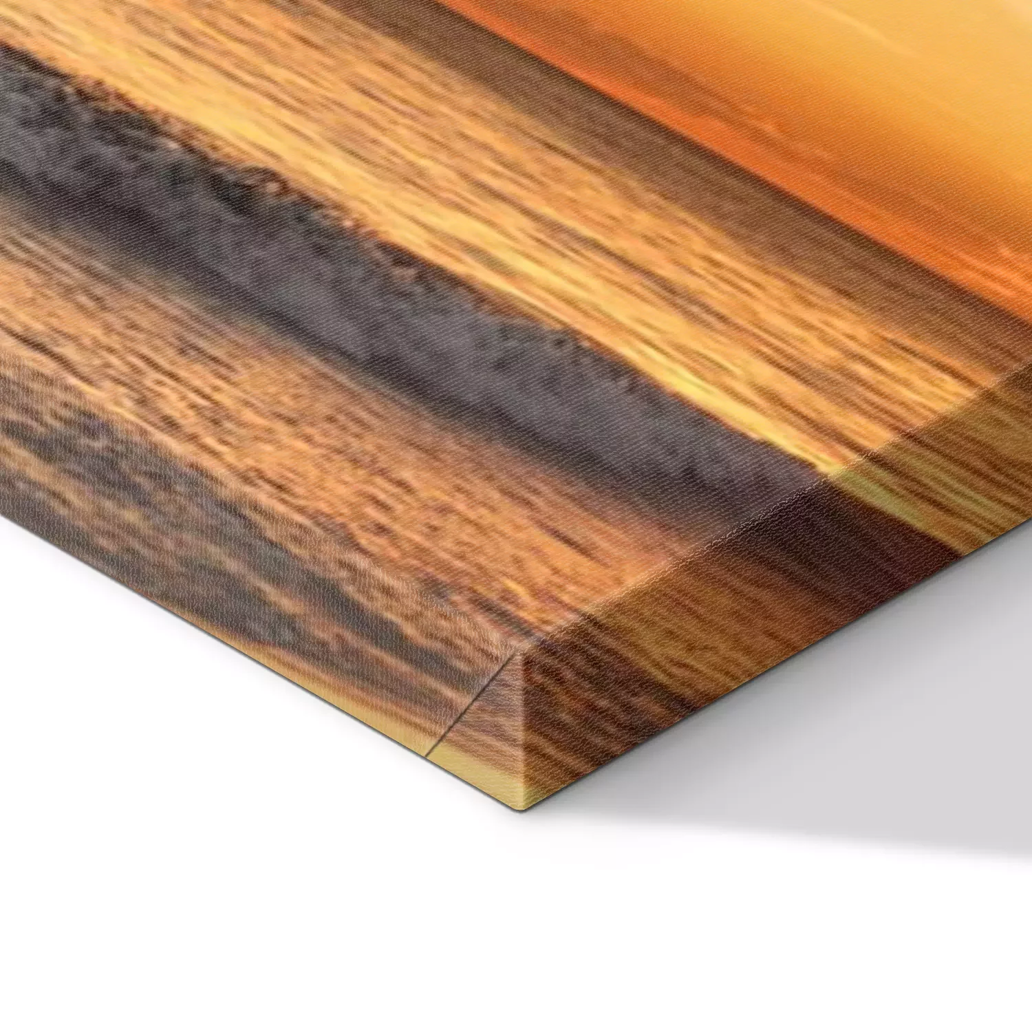 De print wordt aangebracht op hoogwaardig canvas dat op een schildersweefgetouw (spieraam) wordt gespannen. Omdat de print de zijranden bedekt, hoeft het ontwerp niet met een extra kader te worden omlijst. Wij raden ook composities aan die uit meerdere foto's bestaan en zo een coherente compositie vormen.