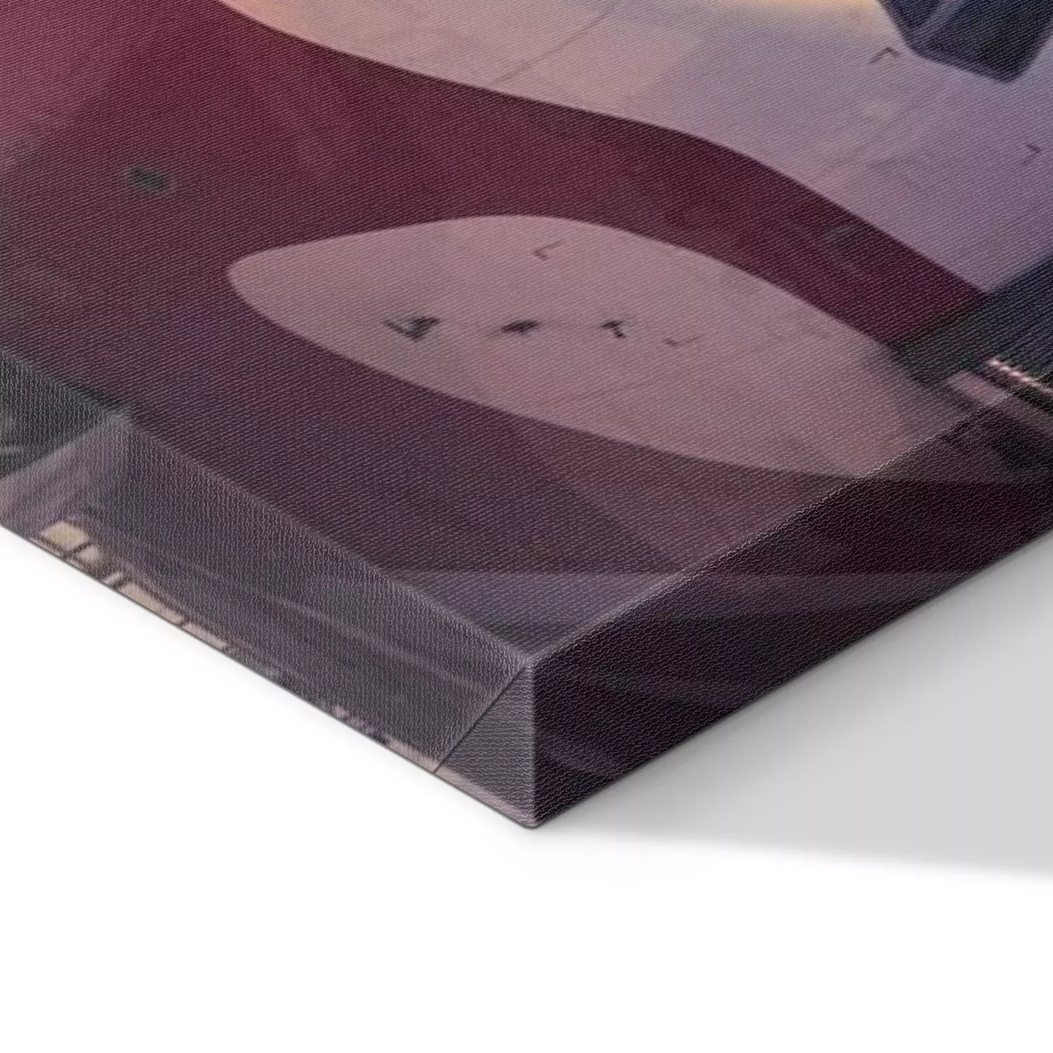 De print wordt aangebracht op hoogwaardig canvas dat op een schildersweefgetouw (spieraam) wordt gespannen. Omdat de print de zijranden bedekt, hoeft het ontwerp niet met een extra kader te worden omlijst. Wij raden ook composities aan die uit meerdere foto's bestaan en zo een coherente compositie vormen.