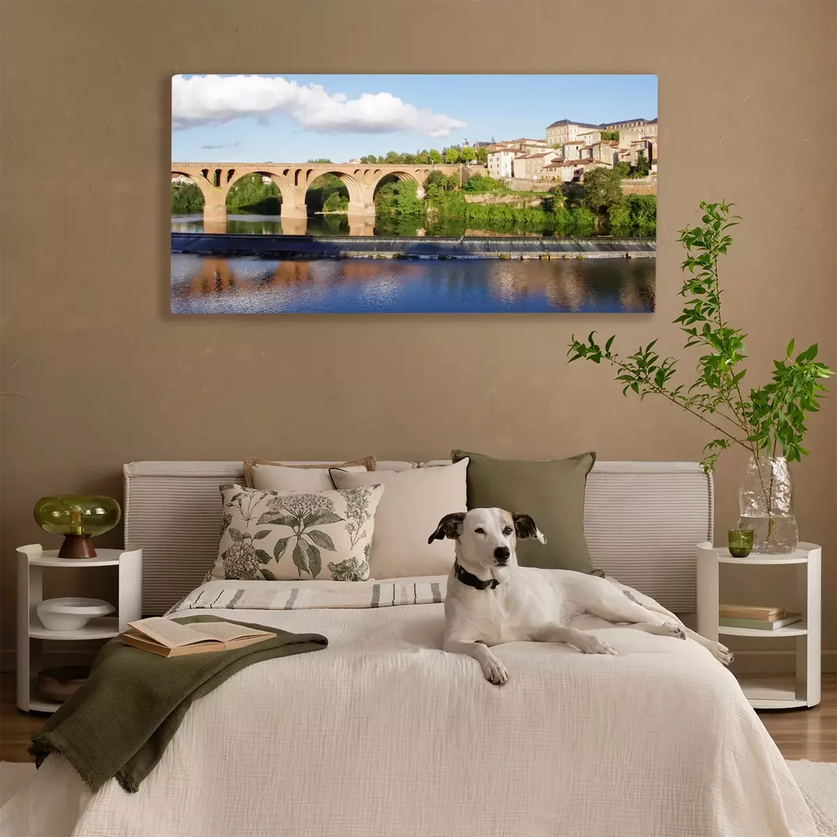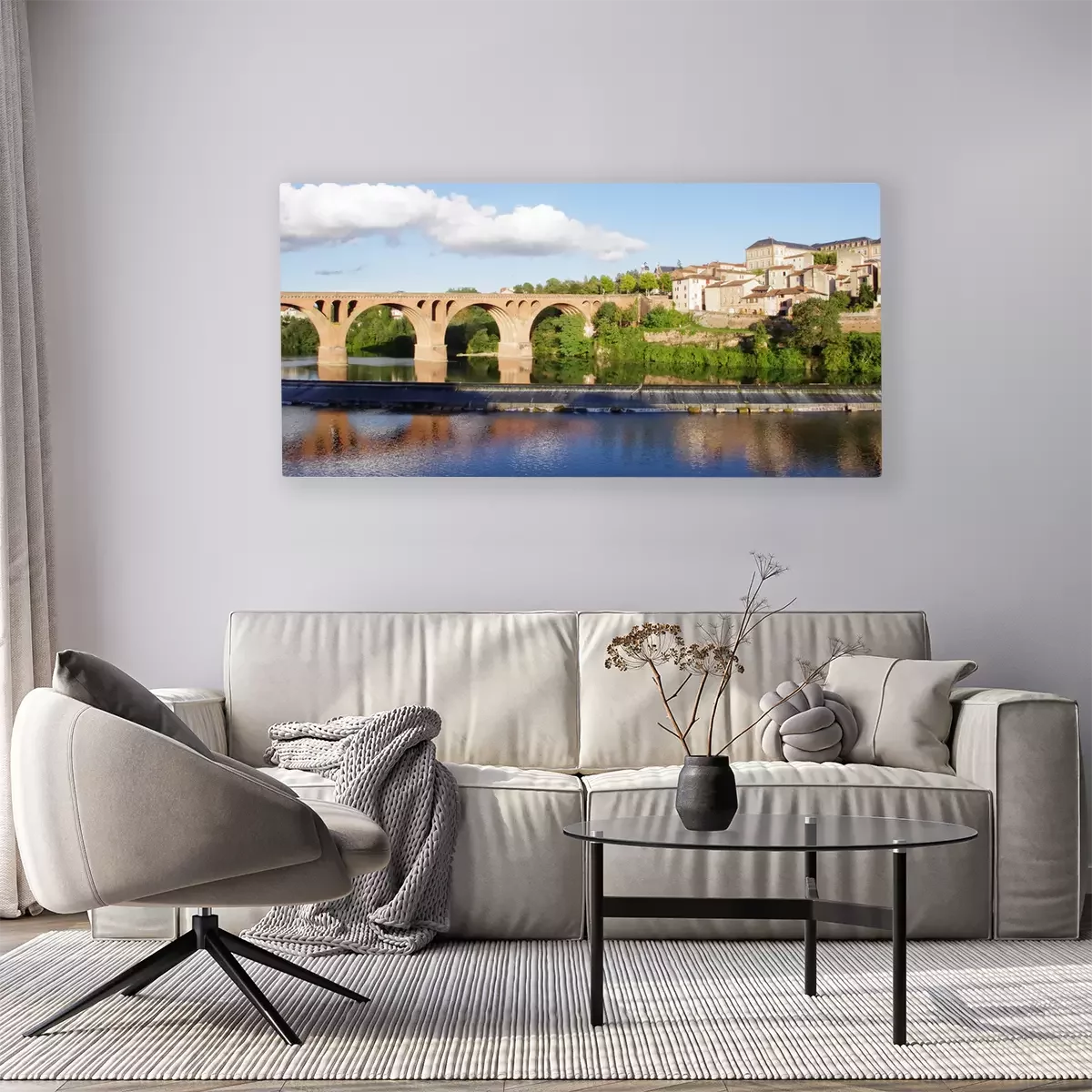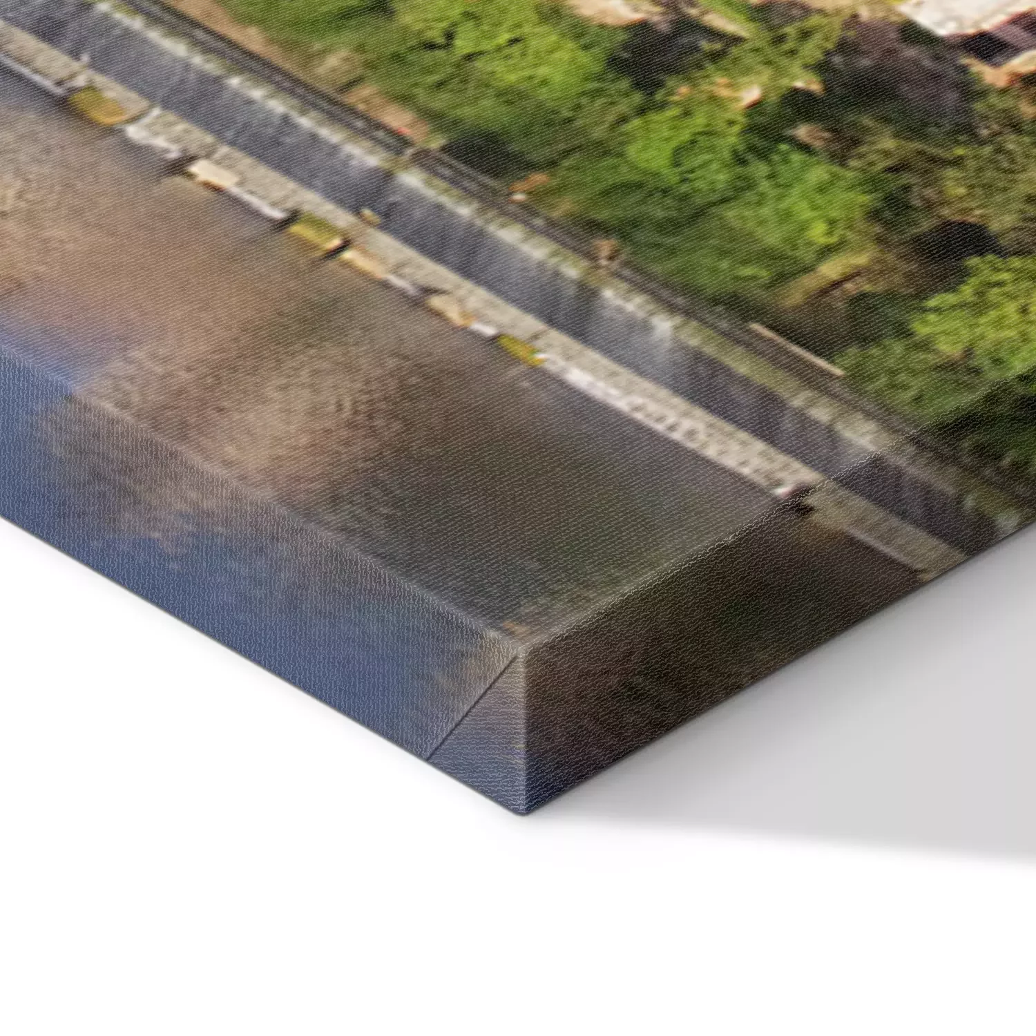 De print wordt aangebracht op hoogwaardig canvas dat op een schildersweefgetouw (spieraam) wordt gespannen. Omdat de print de zijranden bedekt, hoeft het ontwerp niet met een extra kader te worden omlijst. Wij raden ook composities aan die uit meerdere foto's bestaan en zo een coherente compositie vormen.