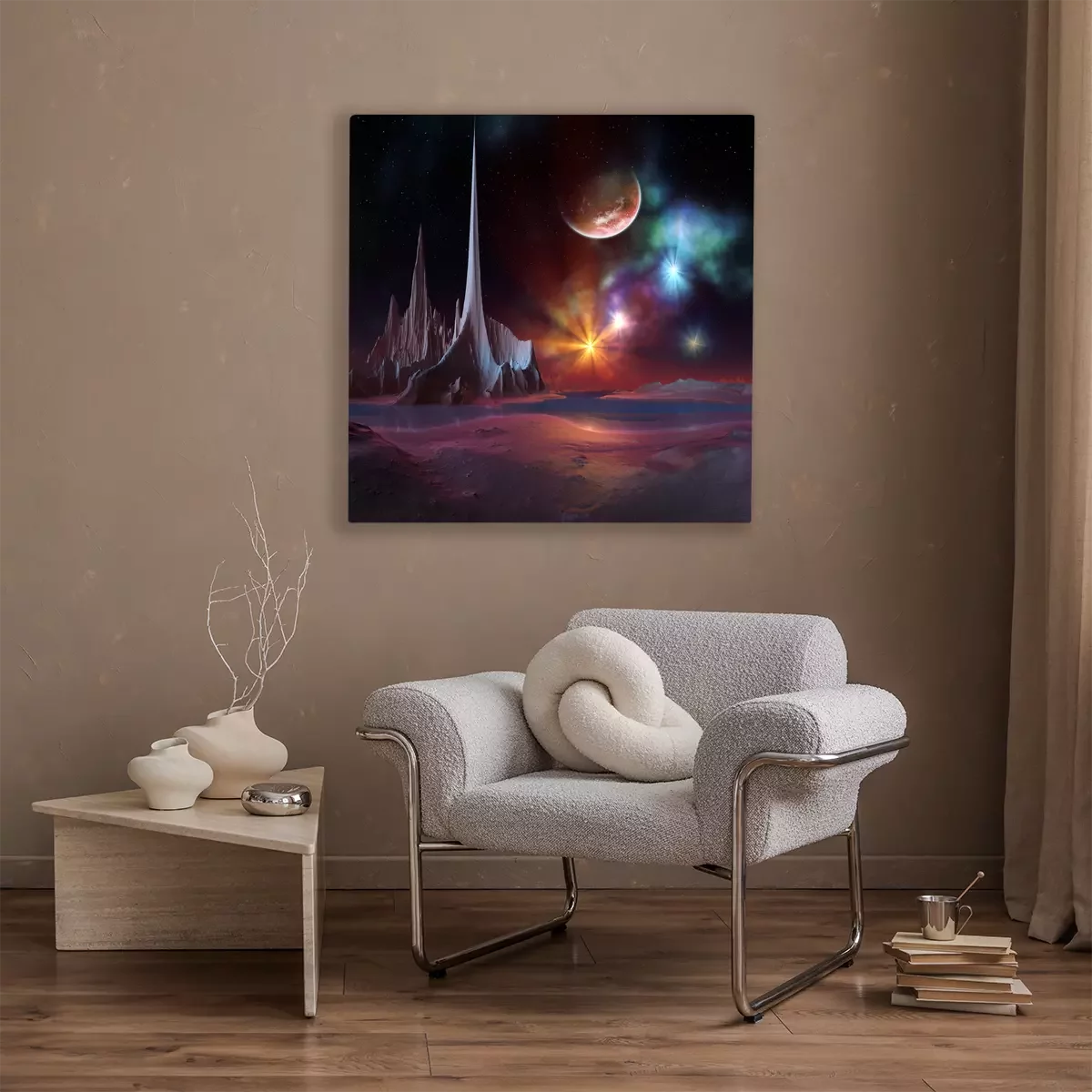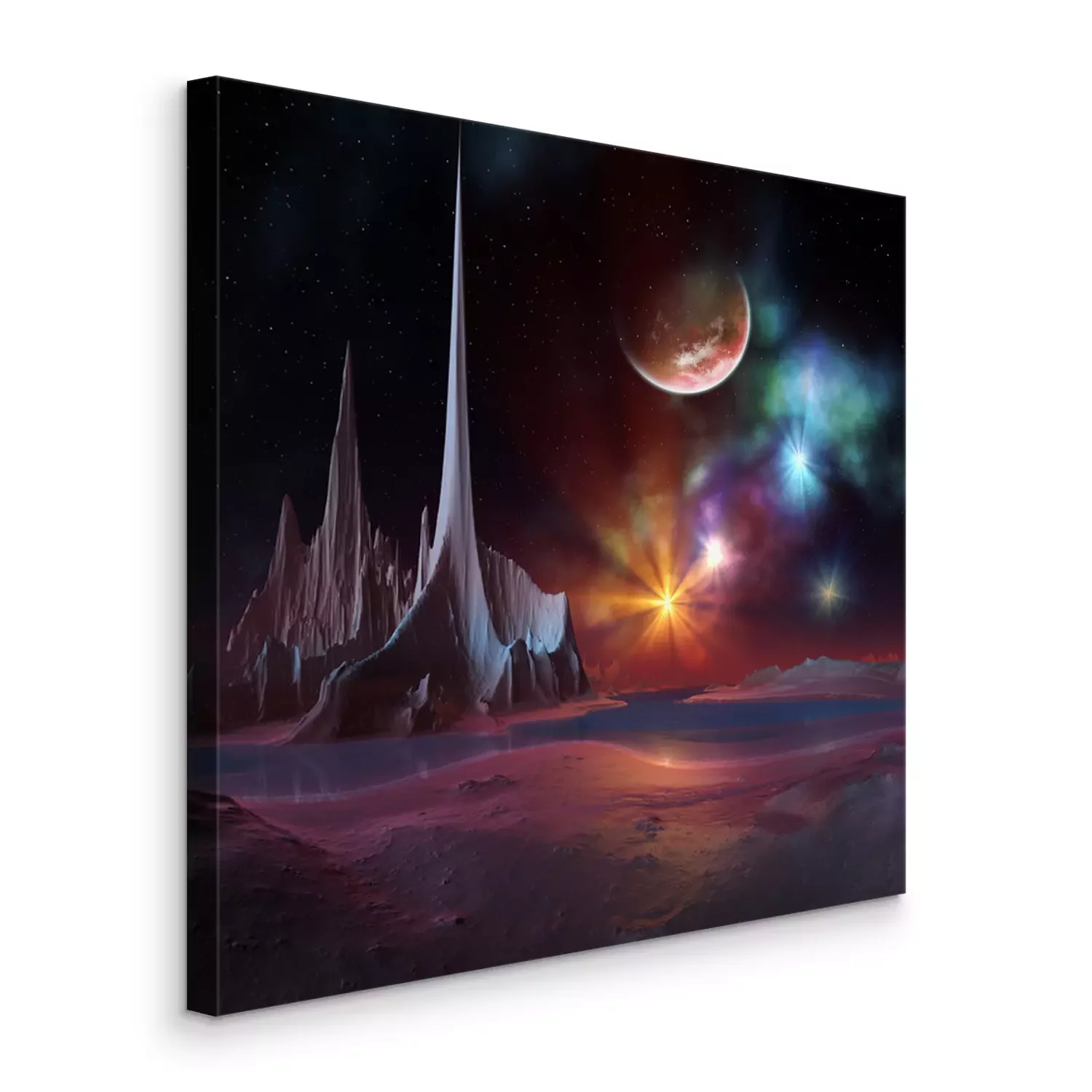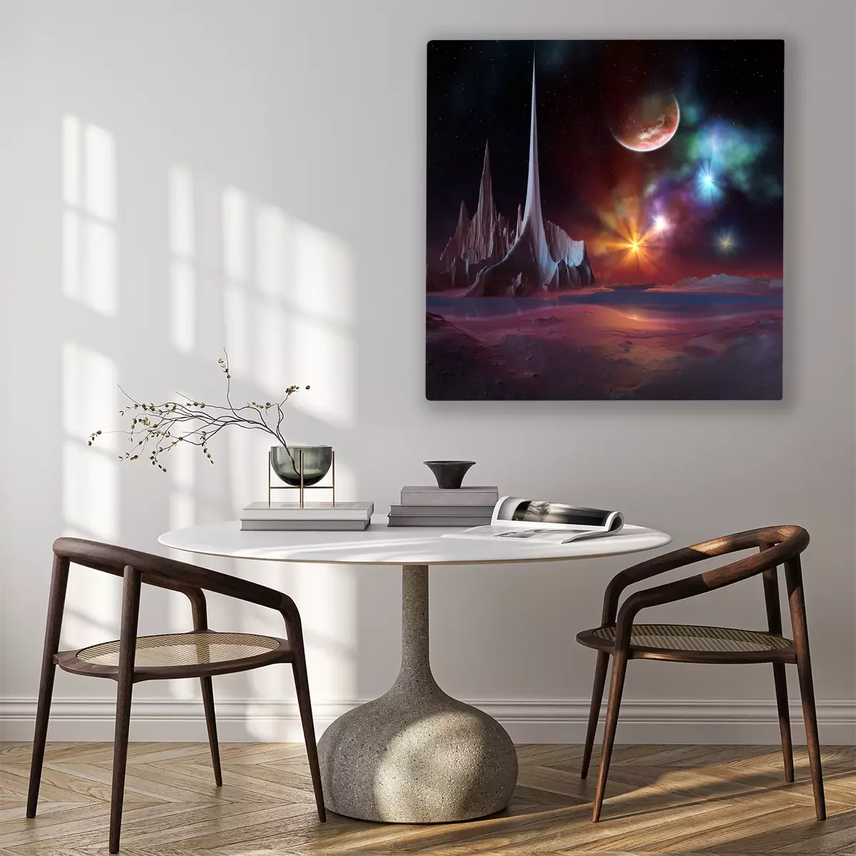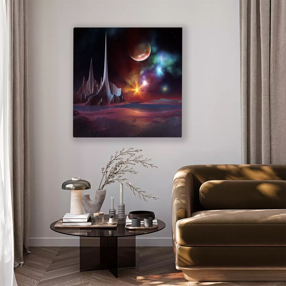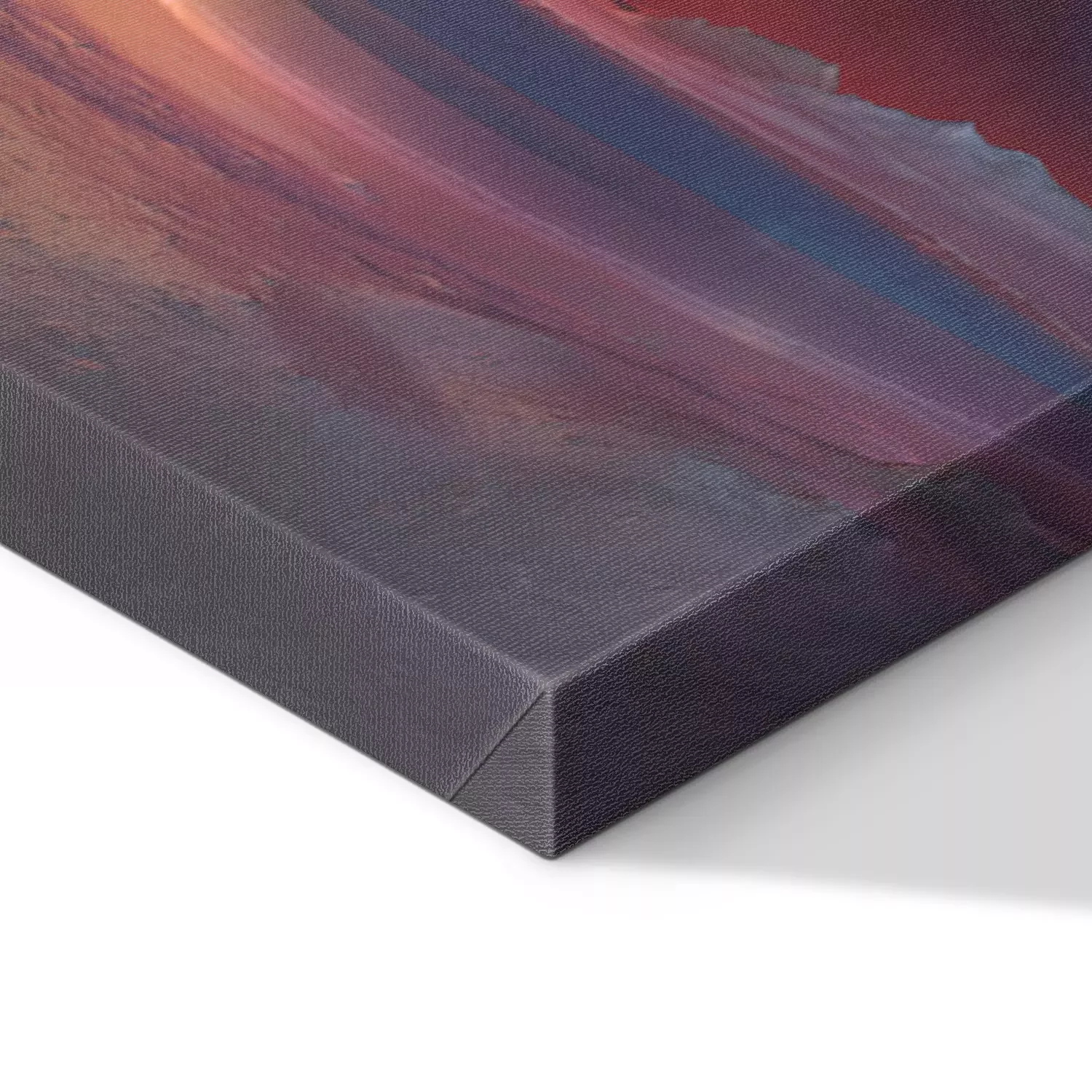 De print wordt aangebracht op hoogwaardig canvas dat op een schildersweefgetouw (spieraam) wordt gespannen. Omdat de print de zijranden bedekt, hoeft het ontwerp niet met een extra kader te worden omlijst. Wij raden ook composities aan die uit meerdere foto's bestaan en zo een coherente compositie vormen.