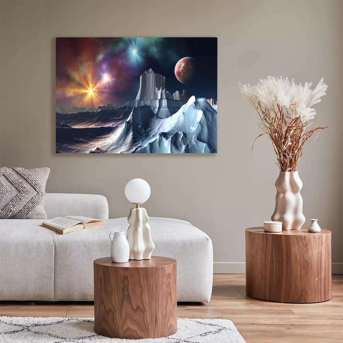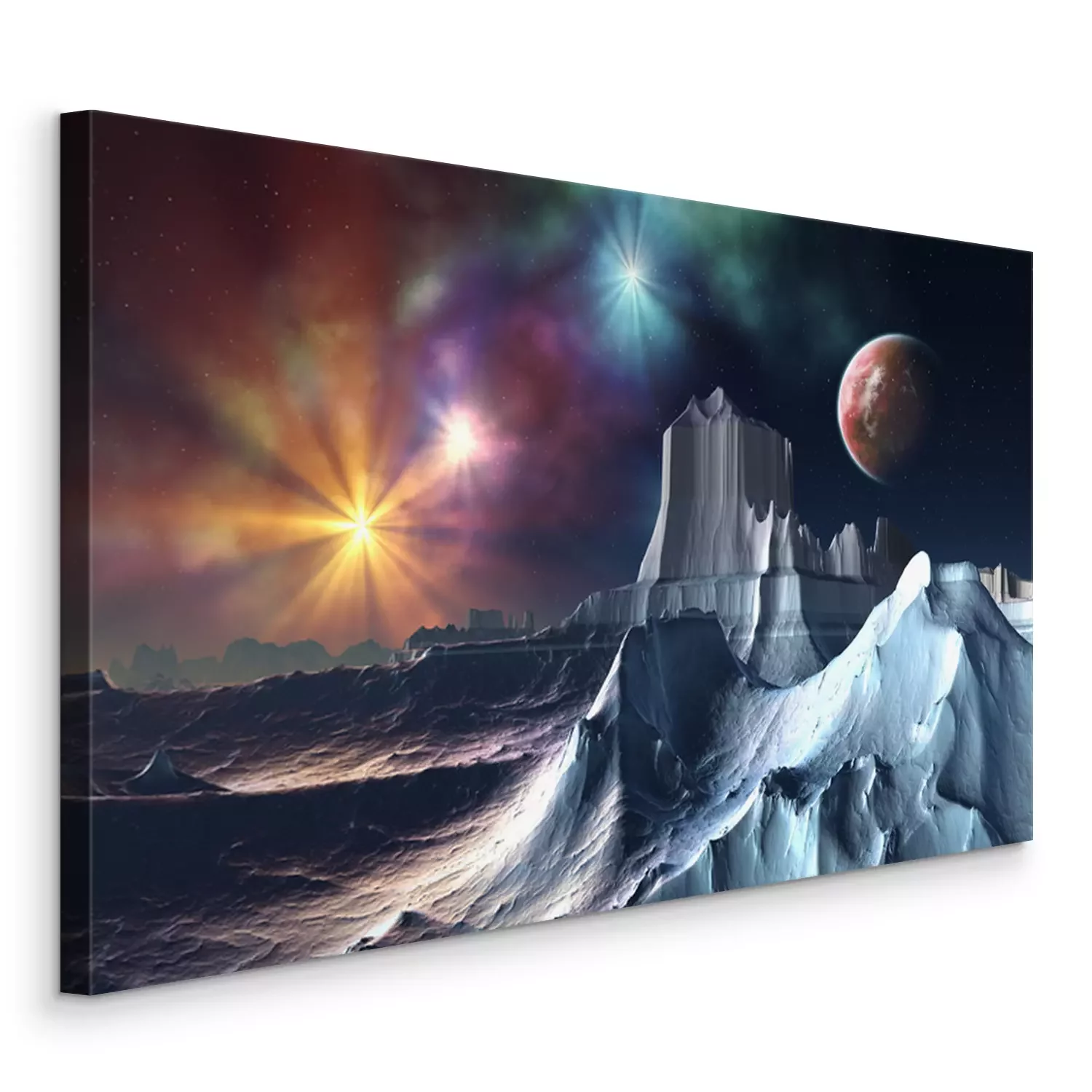 De print wordt aangebracht op hoogwaardig canvas dat op een schildersweefgetouw (spieraam) wordt gespannen. Omdat de print de zijranden bedekt, hoeft het ontwerp niet met een extra kader te worden omlijst. Wij raden ook composities aan die uit meerdere foto's bestaan en zo een coherente compositie vormen.
