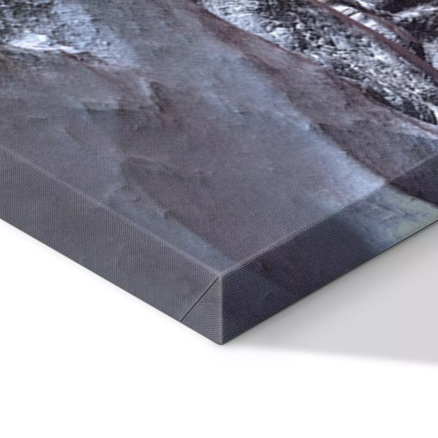 De print wordt aangebracht op hoogwaardig canvas dat op een schildersweefgetouw (spieraam) wordt gespannen. Omdat de print de zijranden bedekt, hoeft het ontwerp niet met een extra kader te worden omlijst. Wij raden ook composities aan die uit meerdere foto's bestaan en zo een coherente compositie vormen.