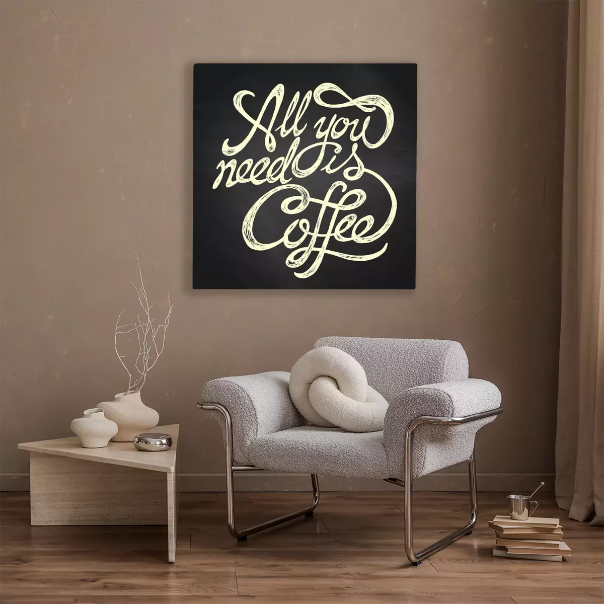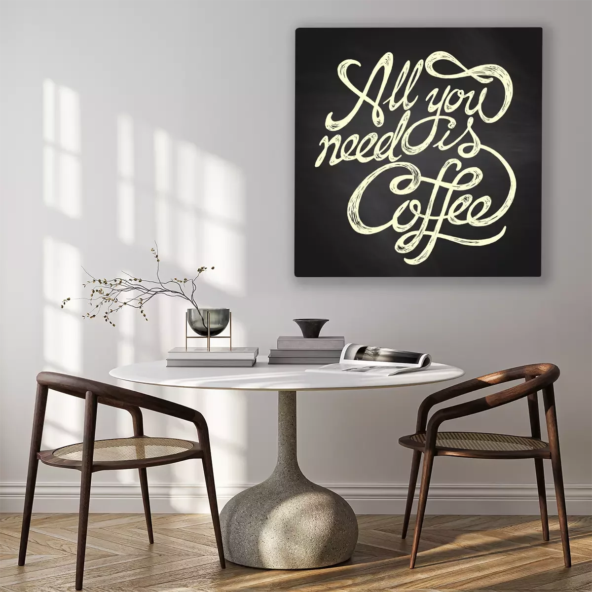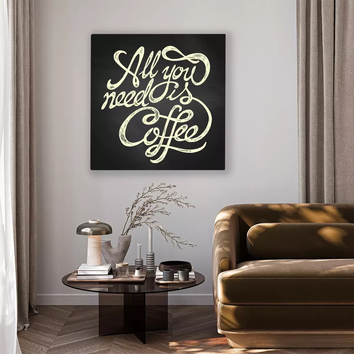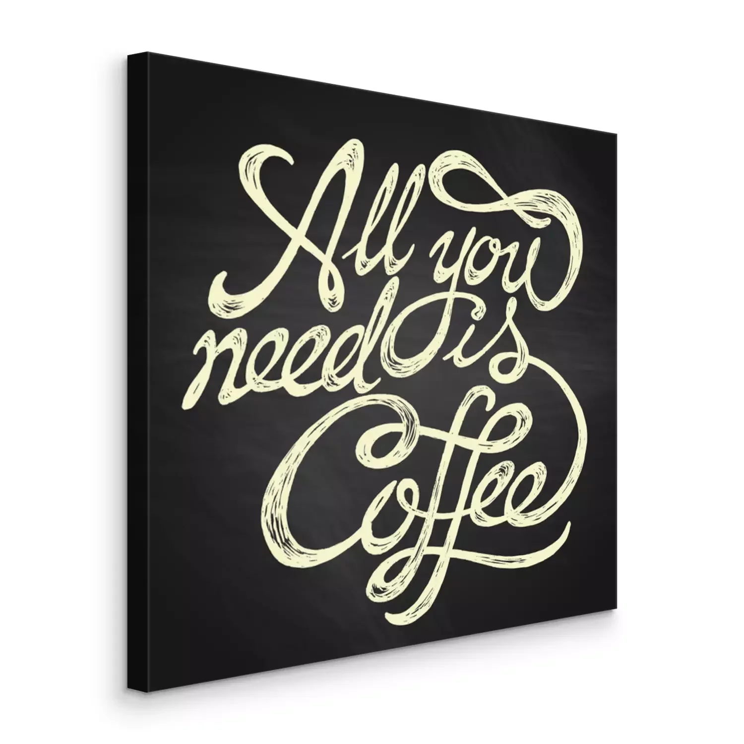 Canvas All You Need is Coffee - hand drawn quote, white on the blackboard background