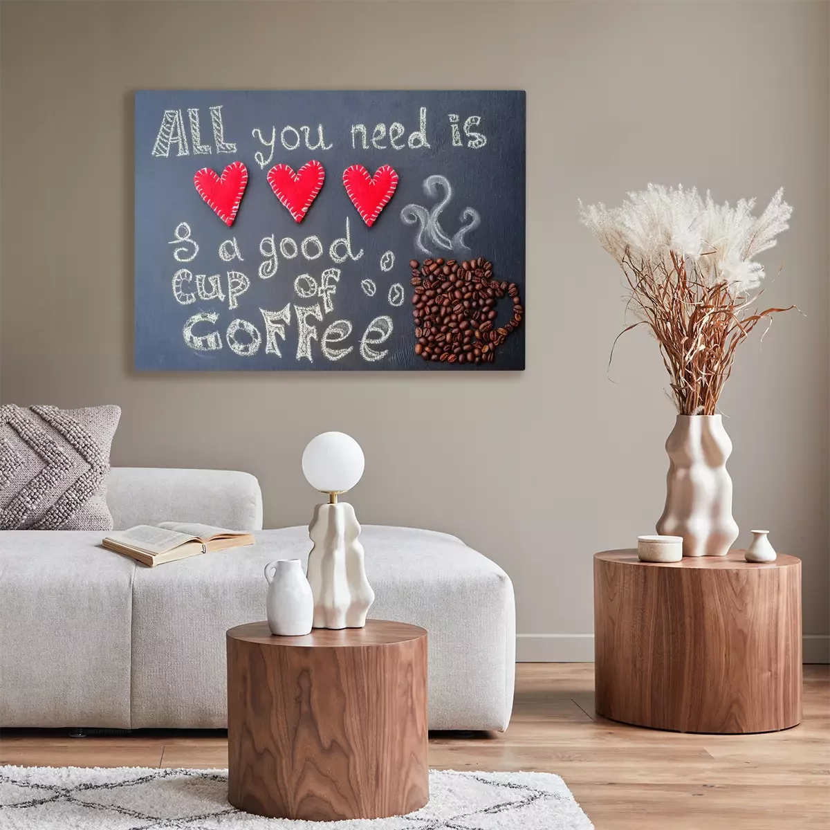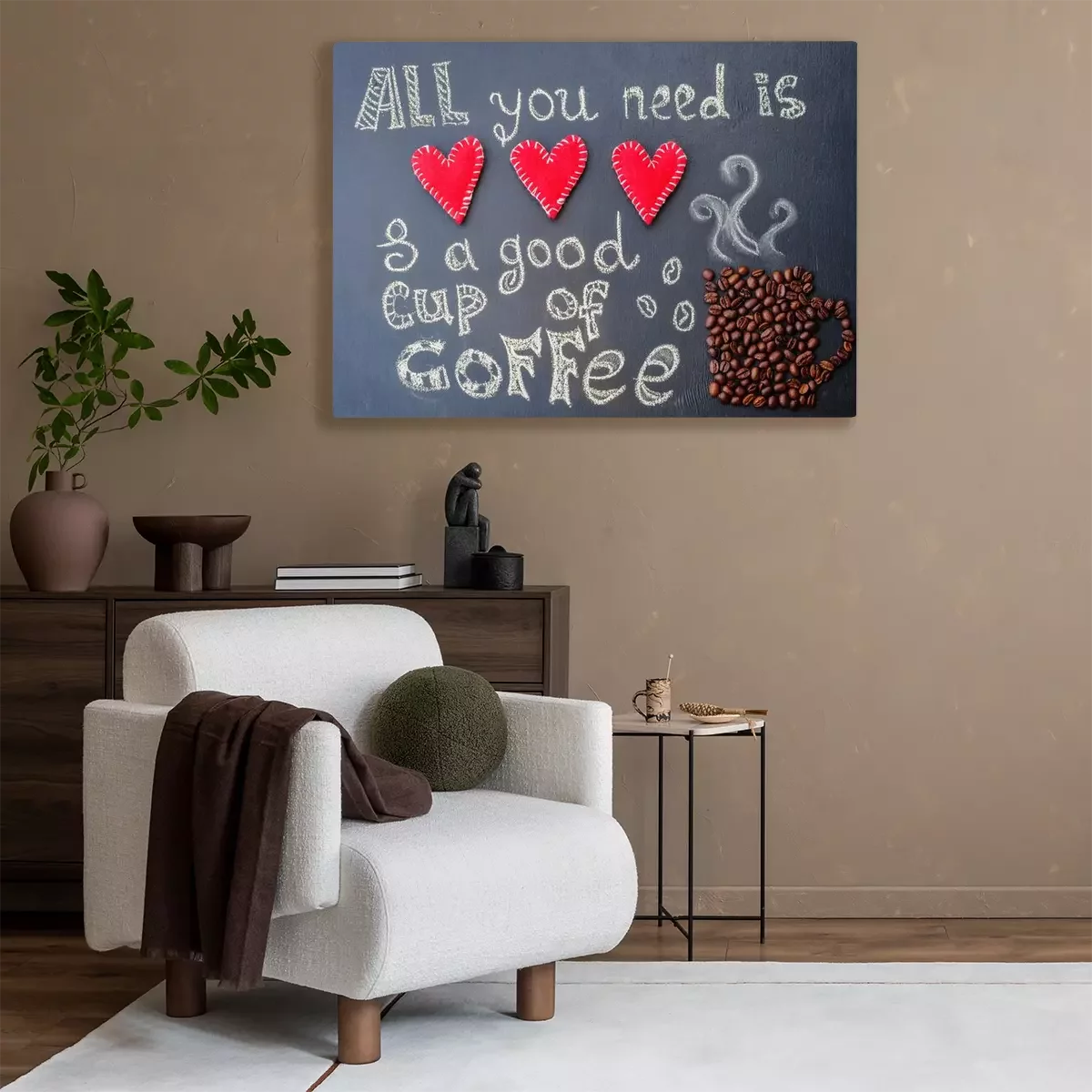 Canvas alles wat je nodig hebt is liefde en een goede kop koffie met koffiebonen