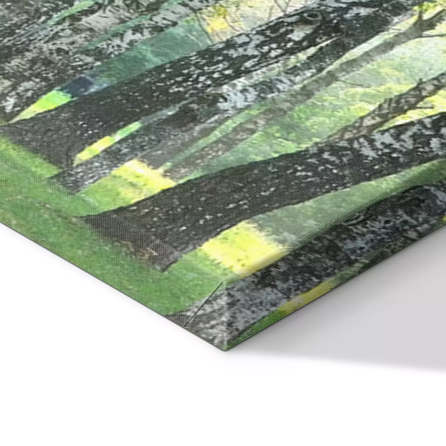 De print wordt aangebracht op hoogwaardig canvas dat op een schildersweefgetouw (spieraam) wordt gespannen. Omdat de print de zijranden bedekt, hoeft het ontwerp niet met een extra kader te worden omlijst. Wij raden ook composities aan die uit meerdere foto's bestaan en zo een coherente compositie vormen.