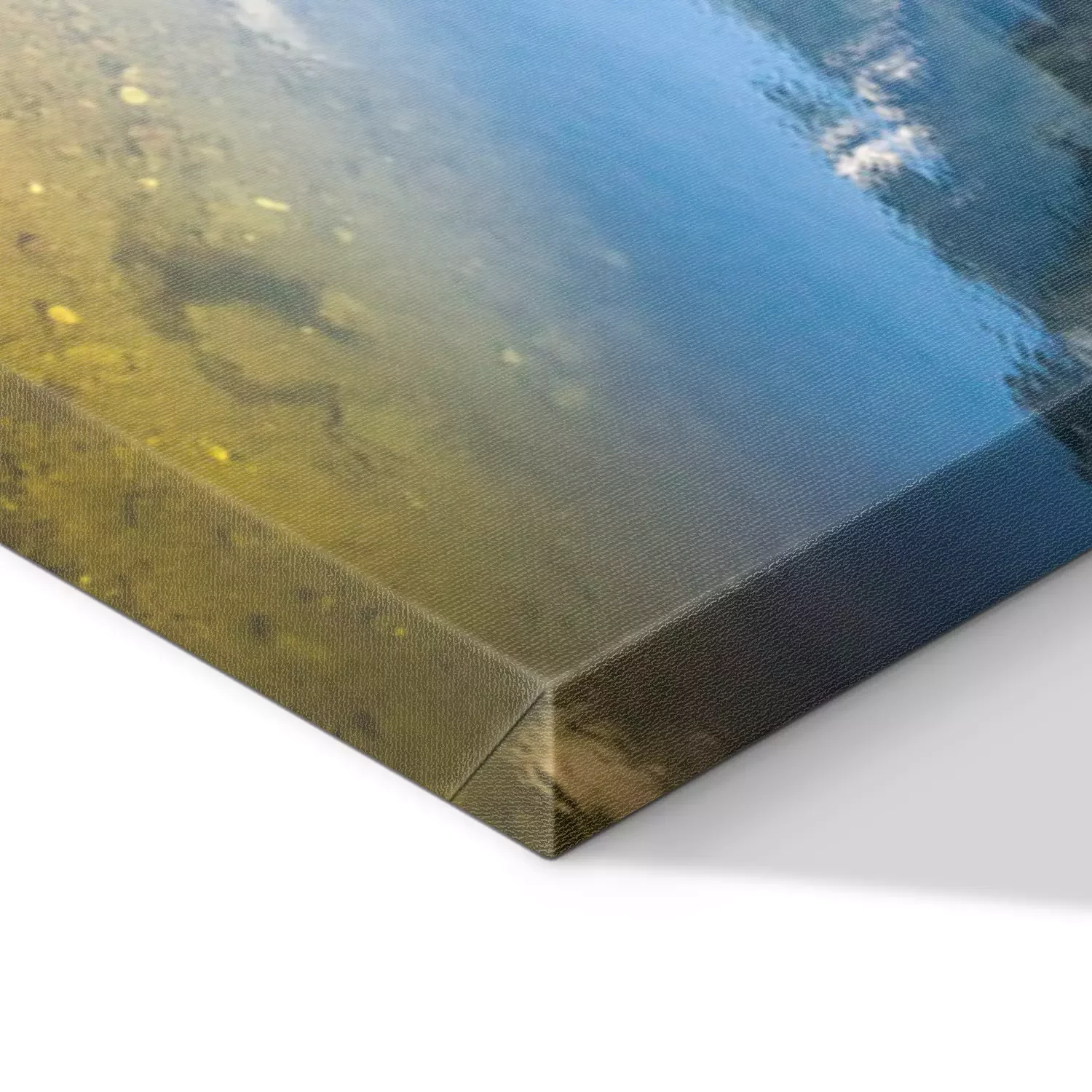 De print wordt aangebracht op hoogwaardig canvas dat op een schildersweefgetouw (spieraam) wordt gespannen. Omdat de print de zijranden bedekt, hoeft het ontwerp niet met een extra kader te worden omlijst. Wij raden ook composities aan die uit meerdere foto's bestaan en zo een coherente compositie vormen.
