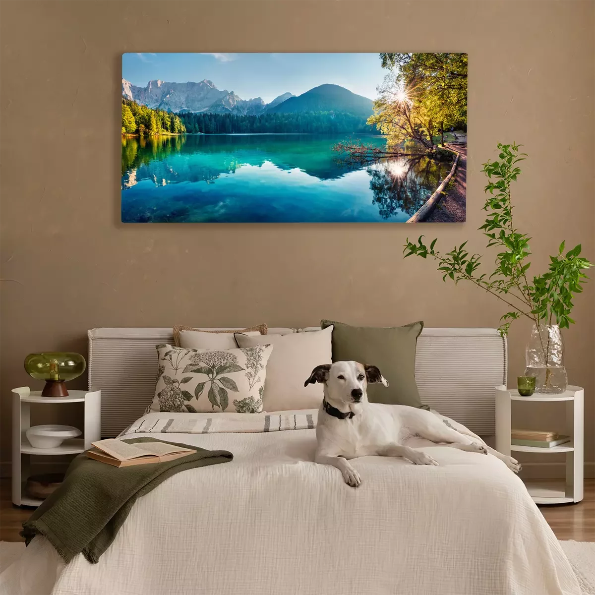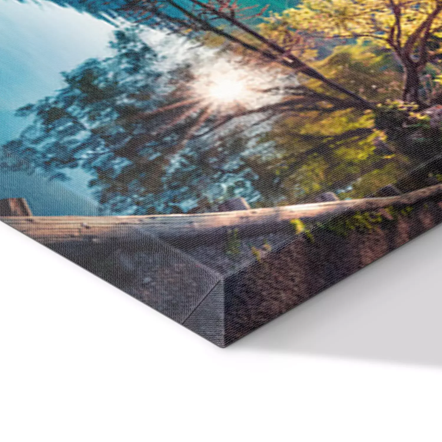 De print wordt aangebracht op hoogwaardig canvas dat op een schildersweefgetouw (spieraam) wordt gespannen. Omdat de print de zijranden bedekt, hoeft het ontwerp niet met een extra kader te worden omlijst. Wij raden ook composities aan die uit meerdere foto's bestaan en zo een coherente compositie vormen.