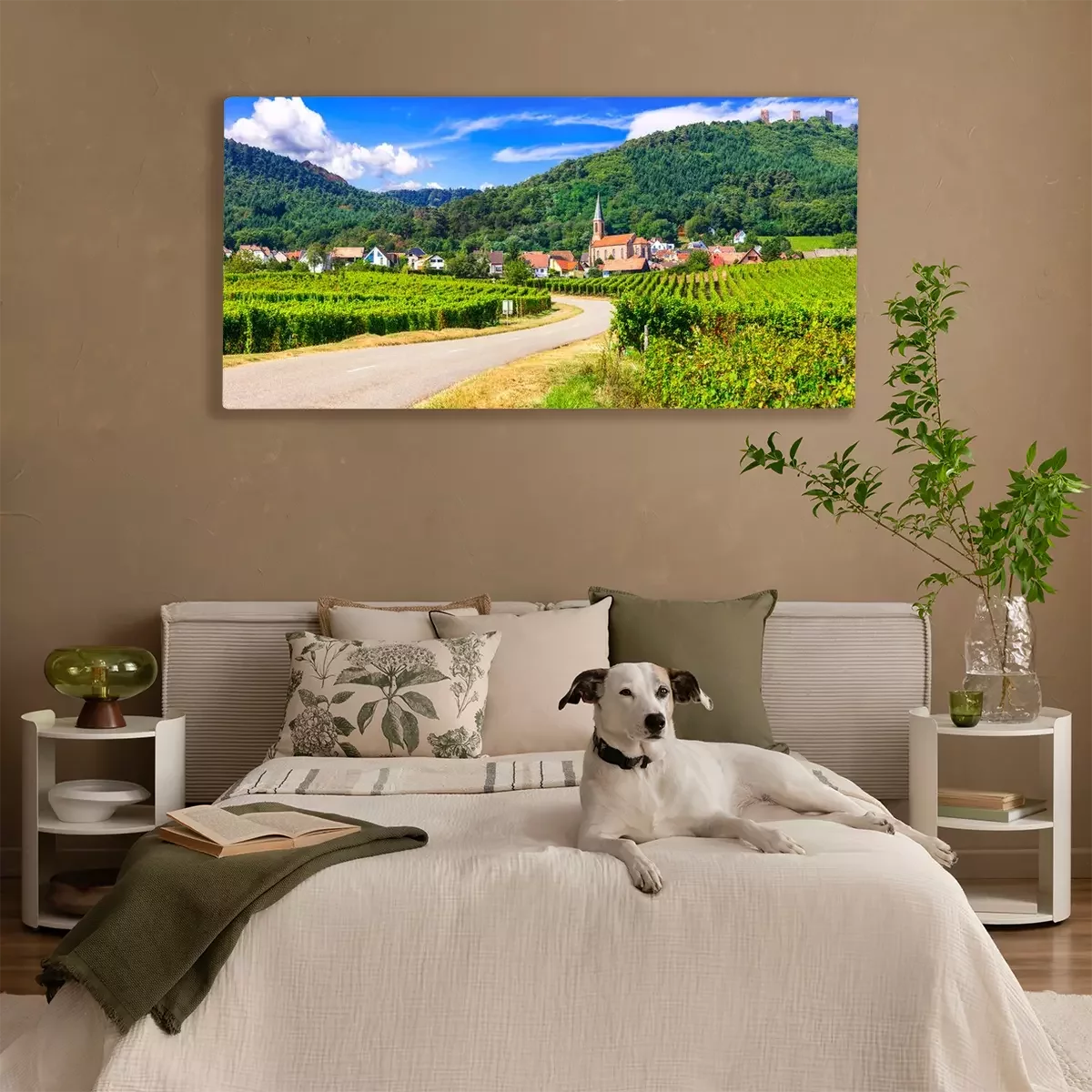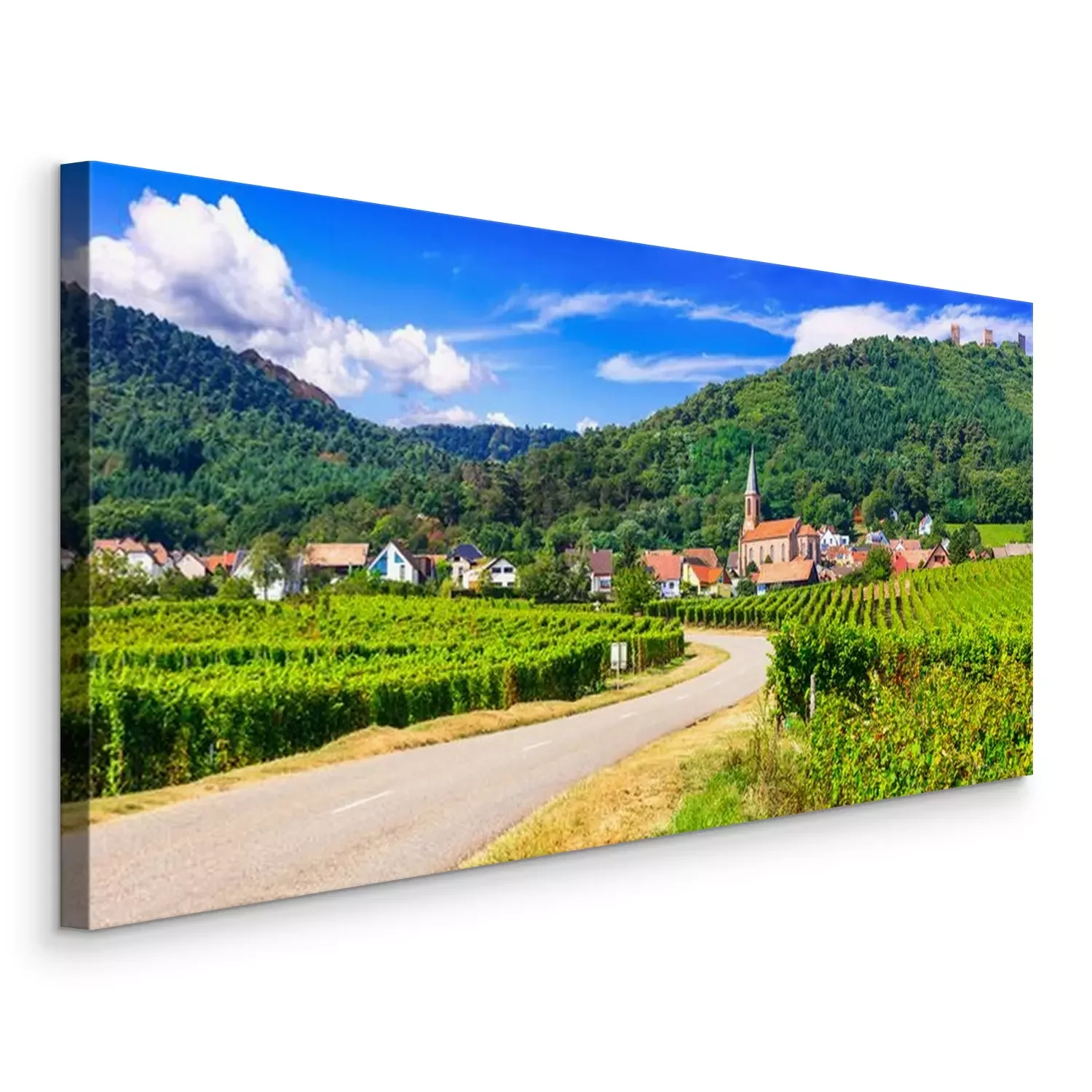 Canvas Alsace region of France - famous "Vine route" . beautiful vineyards and traditional vilage Husseren les chateaux