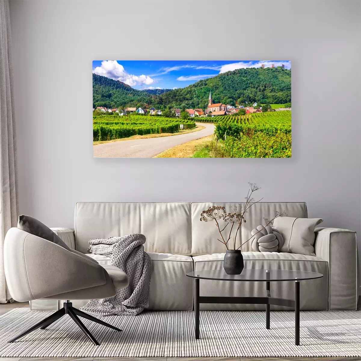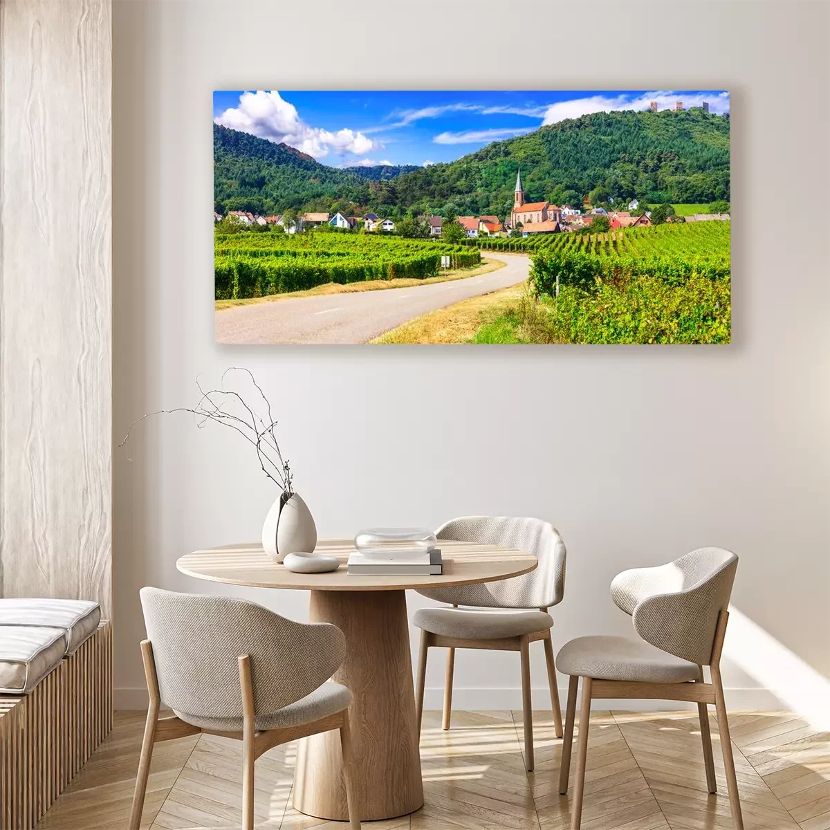 Canvas: Alsace region of France - famous "Vine route" . beautiful vineyards and traditional vilage Husseren les chateaux