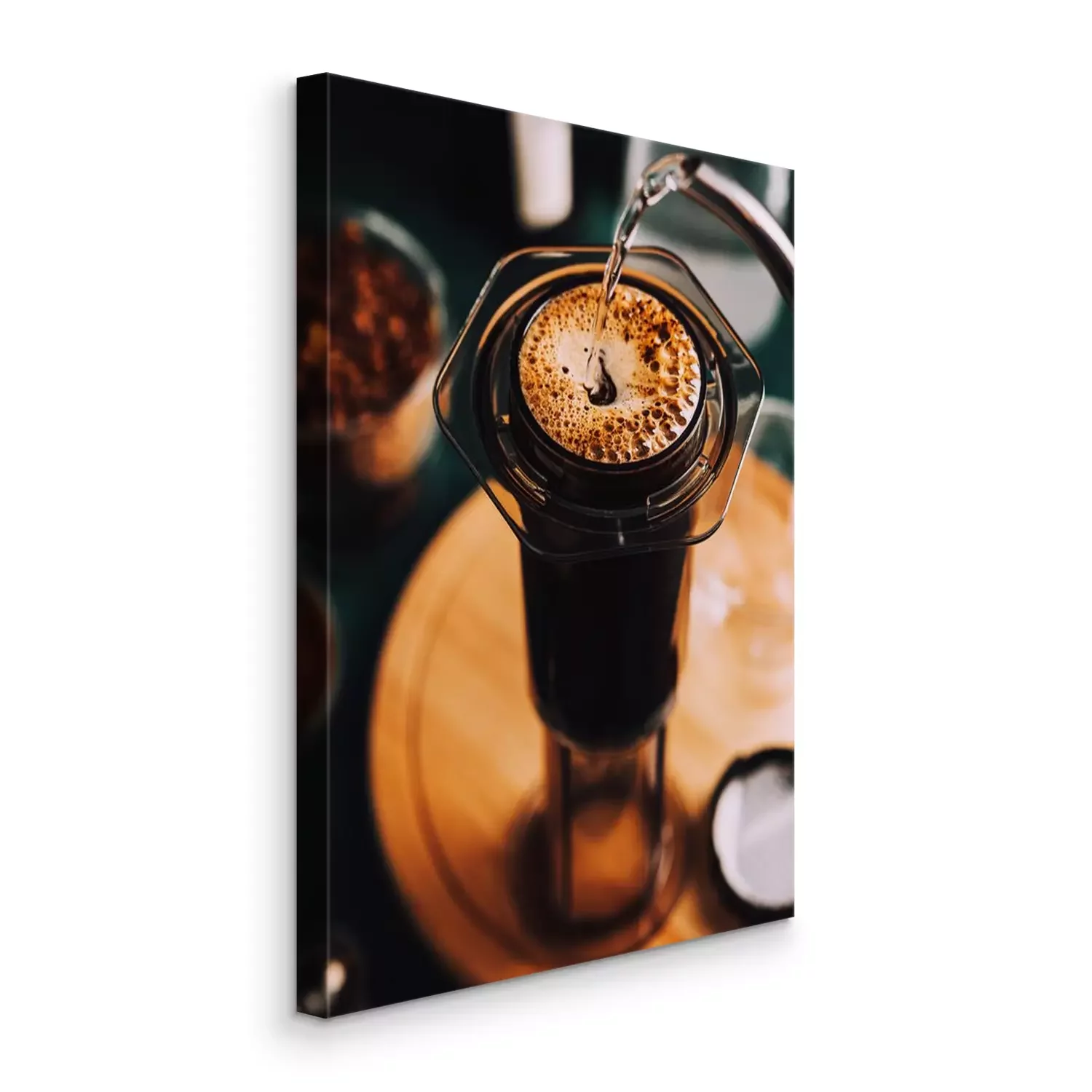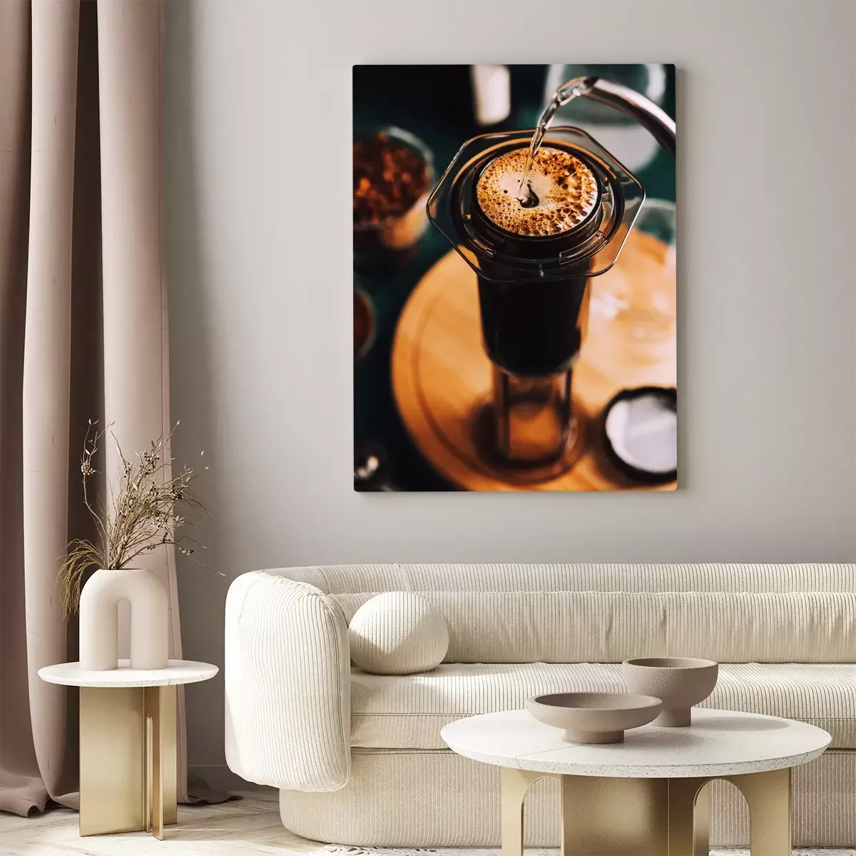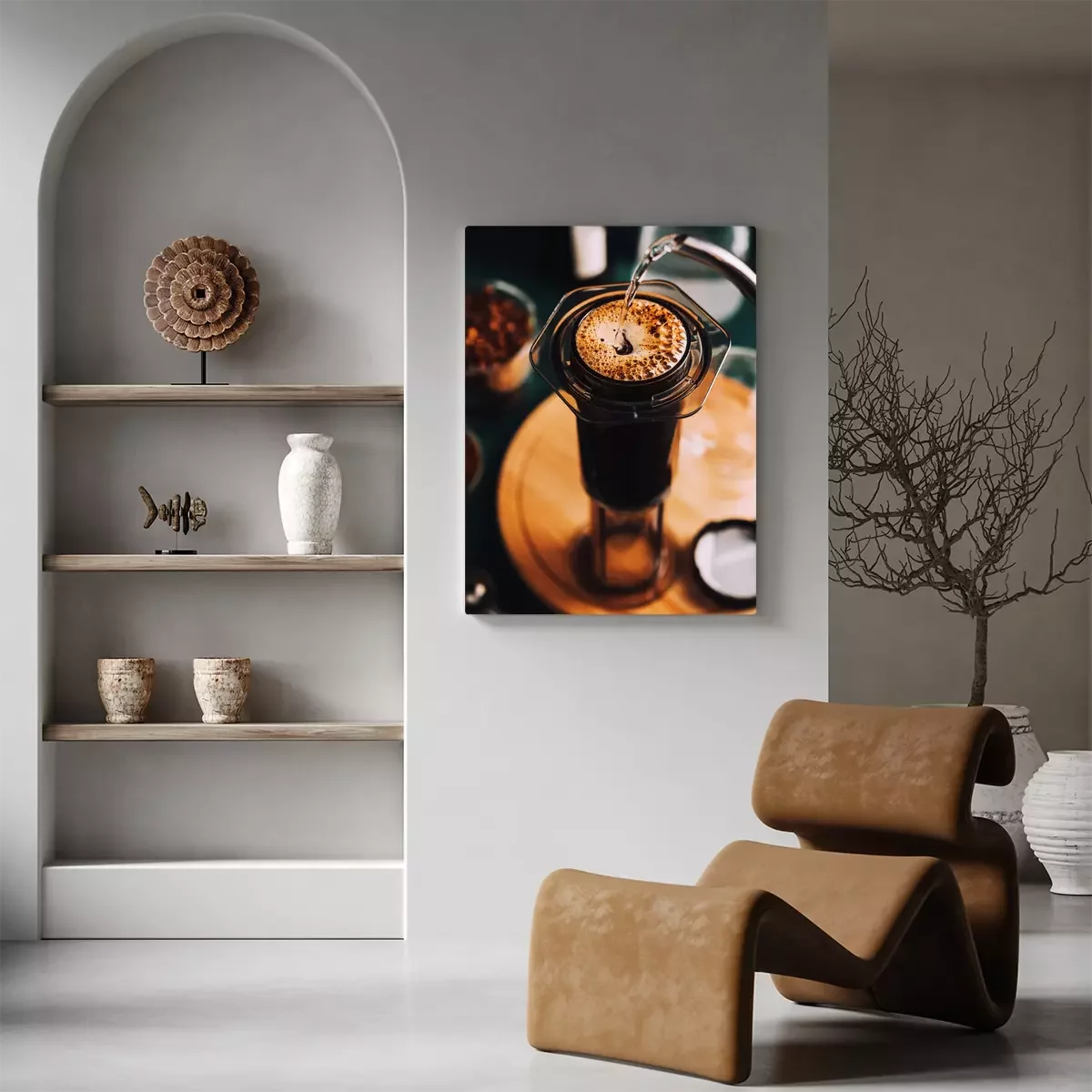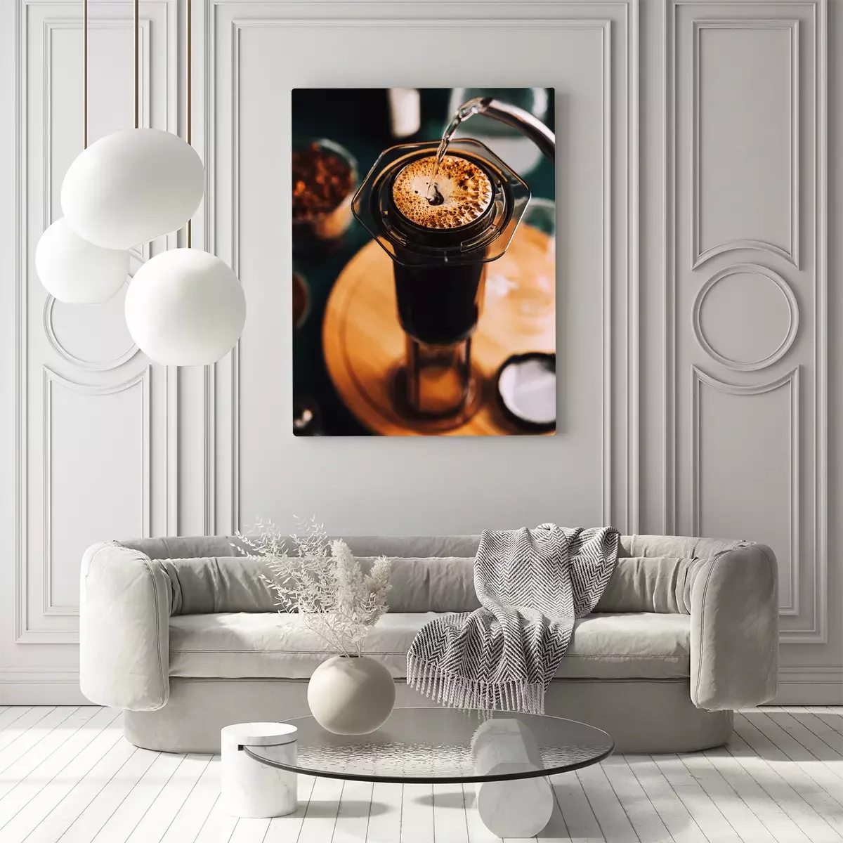 Canvas Alternative method of making aeropress coffee, thick foam on the surface of the coffee