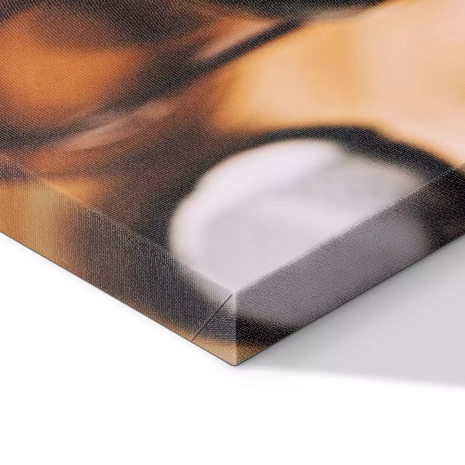 De print wordt aangebracht op hoogwaardig canvas dat op een schildersweefgetouw (spieraam) wordt gespannen. Omdat de print de zijranden bedekt, hoeft het ontwerp niet met een extra kader te worden omlijst. Wij raden ook composities aan die uit meerdere foto's bestaan en zo een coherente compositie vormen.