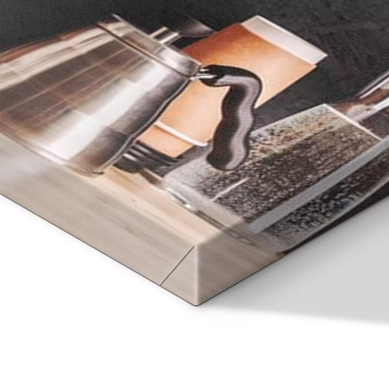 De print wordt aangebracht op hoogwaardig canvas dat op een schildersweefgetouw (spieraam) wordt gespannen. Omdat de print de zijranden bedekt, hoeft het ontwerp niet met een extra kader te worden omlijst. Wij raden ook composities aan die uit meerdere foto's bestaan en zo een coherente compositie vormen.