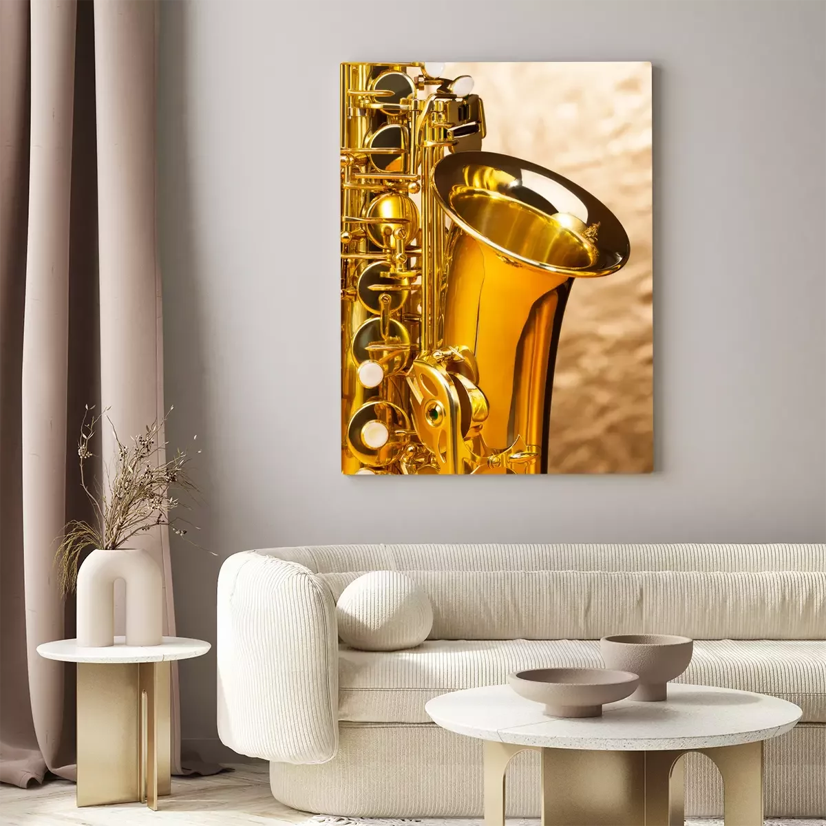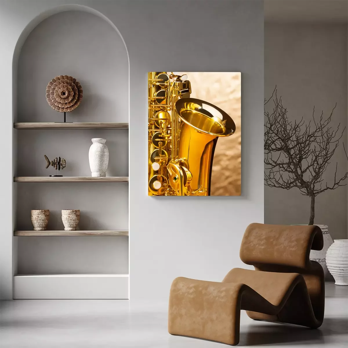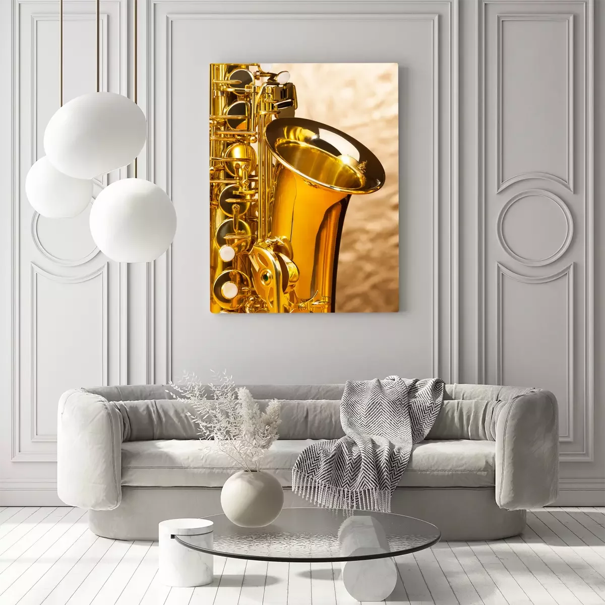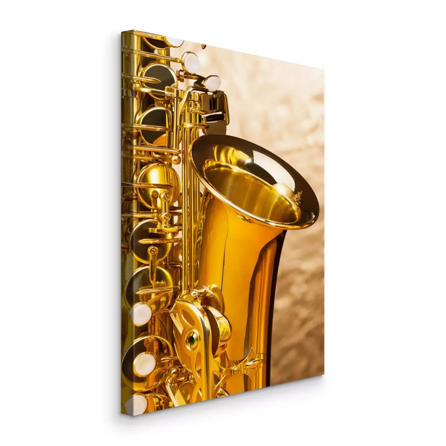 Canvas Altsaxofoon met sleutels op zilveren achtergrond