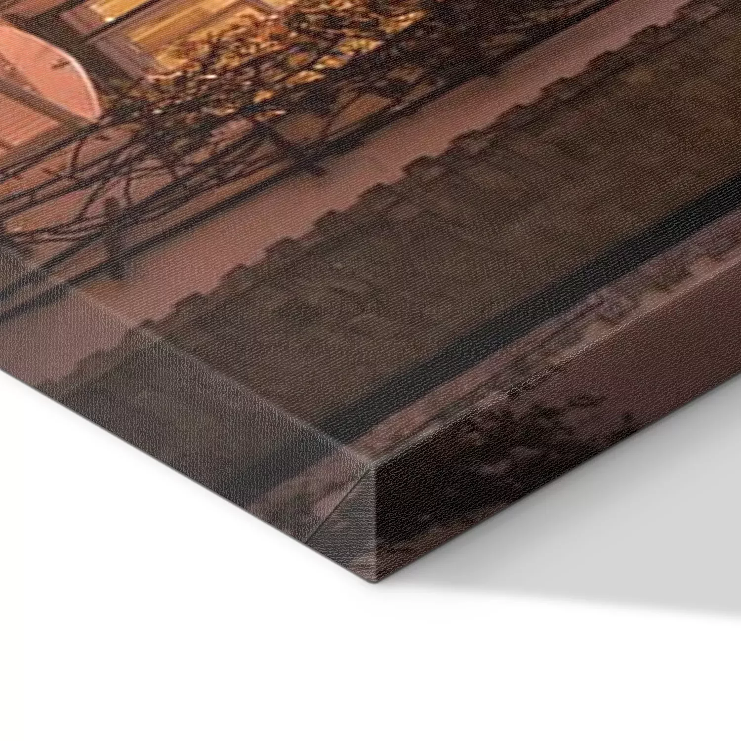 De print wordt aangebracht op hoogwaardig canvas dat op een schildersweefgetouw (spieraam) wordt gespannen. Omdat de print de zijranden bedekt, hoeft het ontwerp niet met een extra kader te worden omlijst. Wij raden ook composities aan die uit meerdere foto's bestaan en zo een coherente compositie vormen.