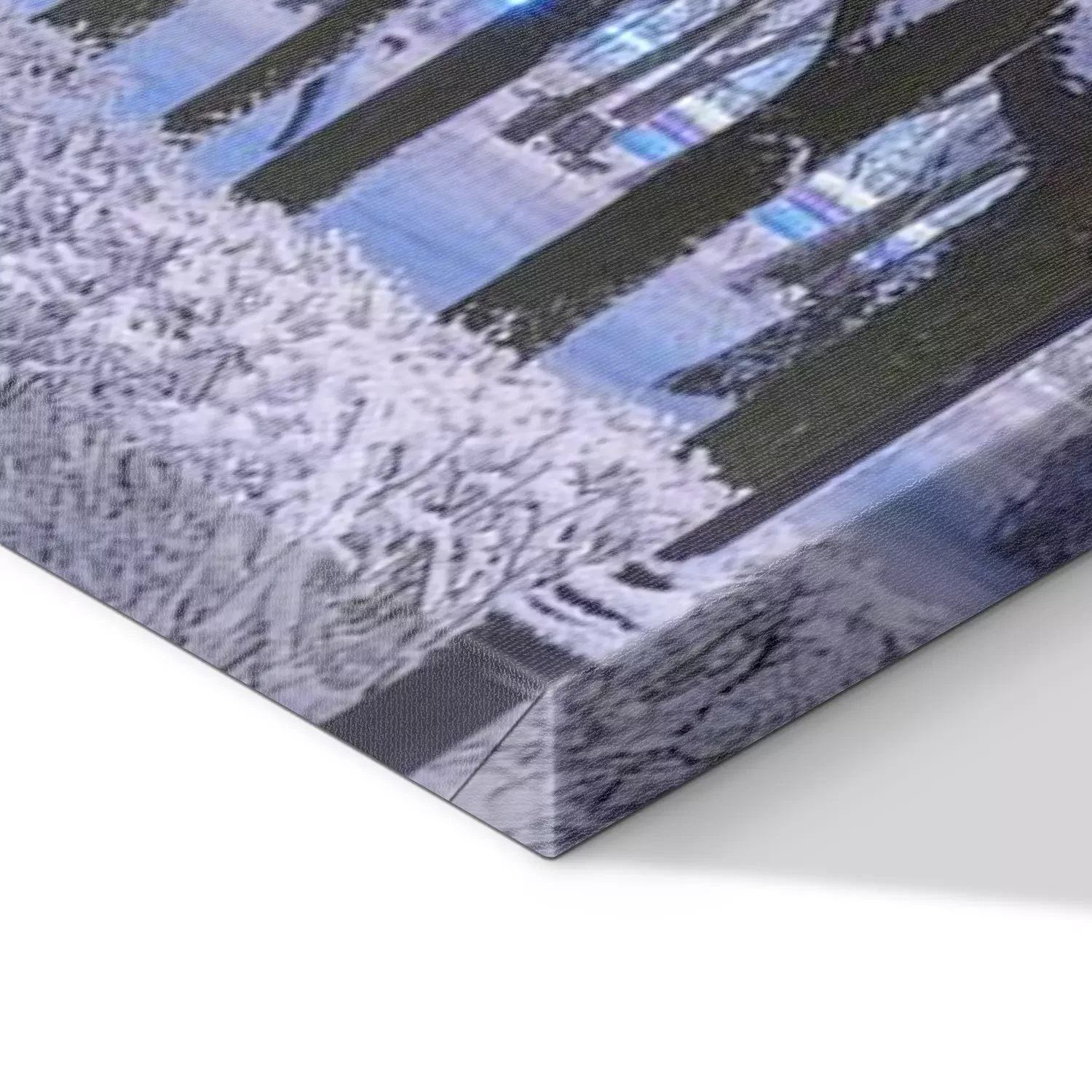 De print wordt aangebracht op hoogwaardig canvas dat op een schildersweefgetouw (spieraam) wordt gespannen. Omdat de print de zijranden bedekt, hoeft het ontwerp niet met een extra kader te worden omlijst. Wij raden ook composities aan die uit meerdere foto's bestaan en zo een coherente compositie vormen.