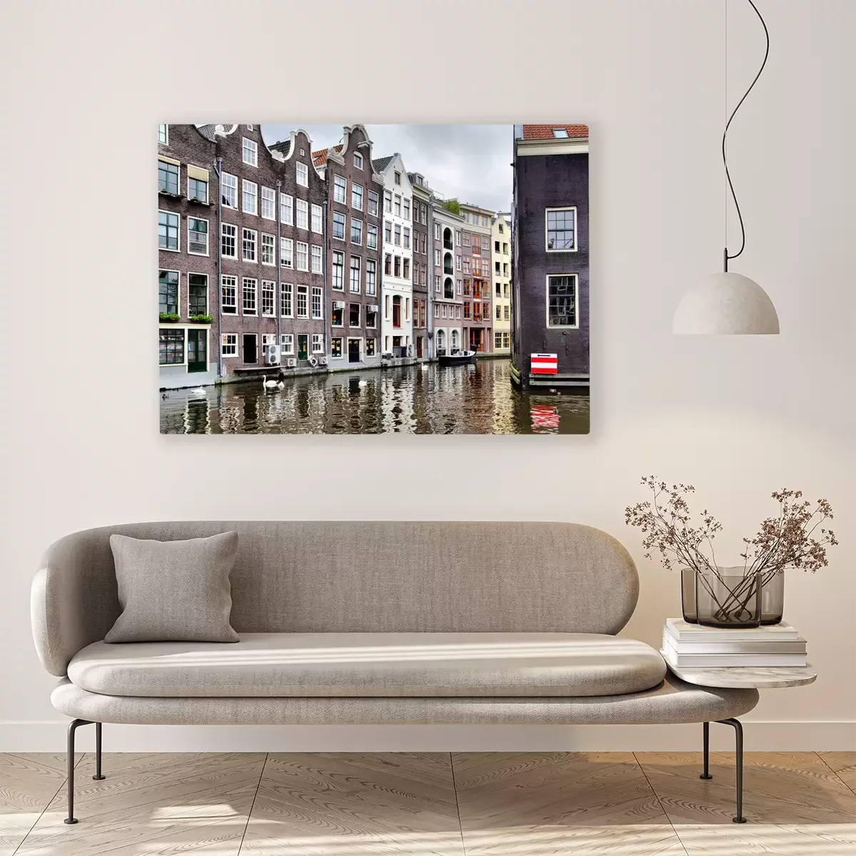 De print wordt aangebracht op hoogwaardig canvas dat op een schildersweefgetouw (spieraam) wordt gespannen. Omdat de print de zijranden bedekt, hoeft het ontwerp niet met een extra kader te worden omlijst. Wij raden ook composities aan die uit meerdere foto's bestaan en zo een coherente compositie vormen.
